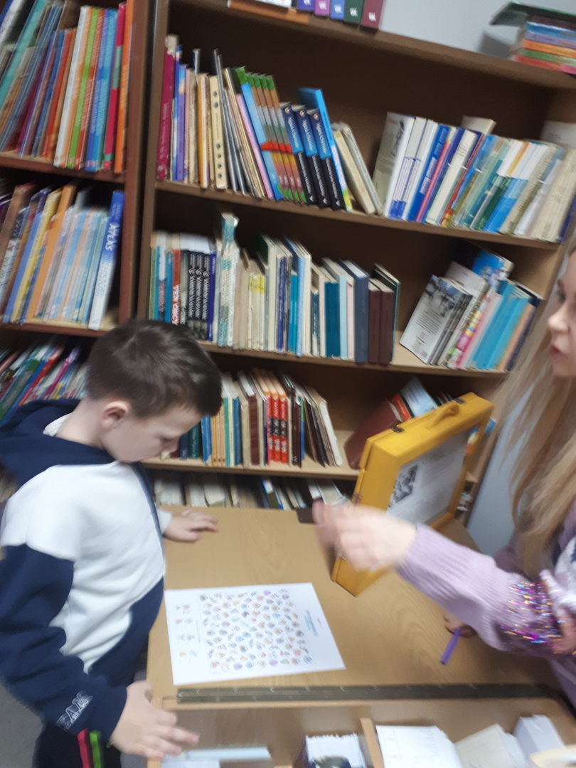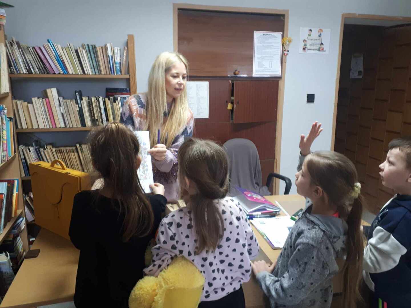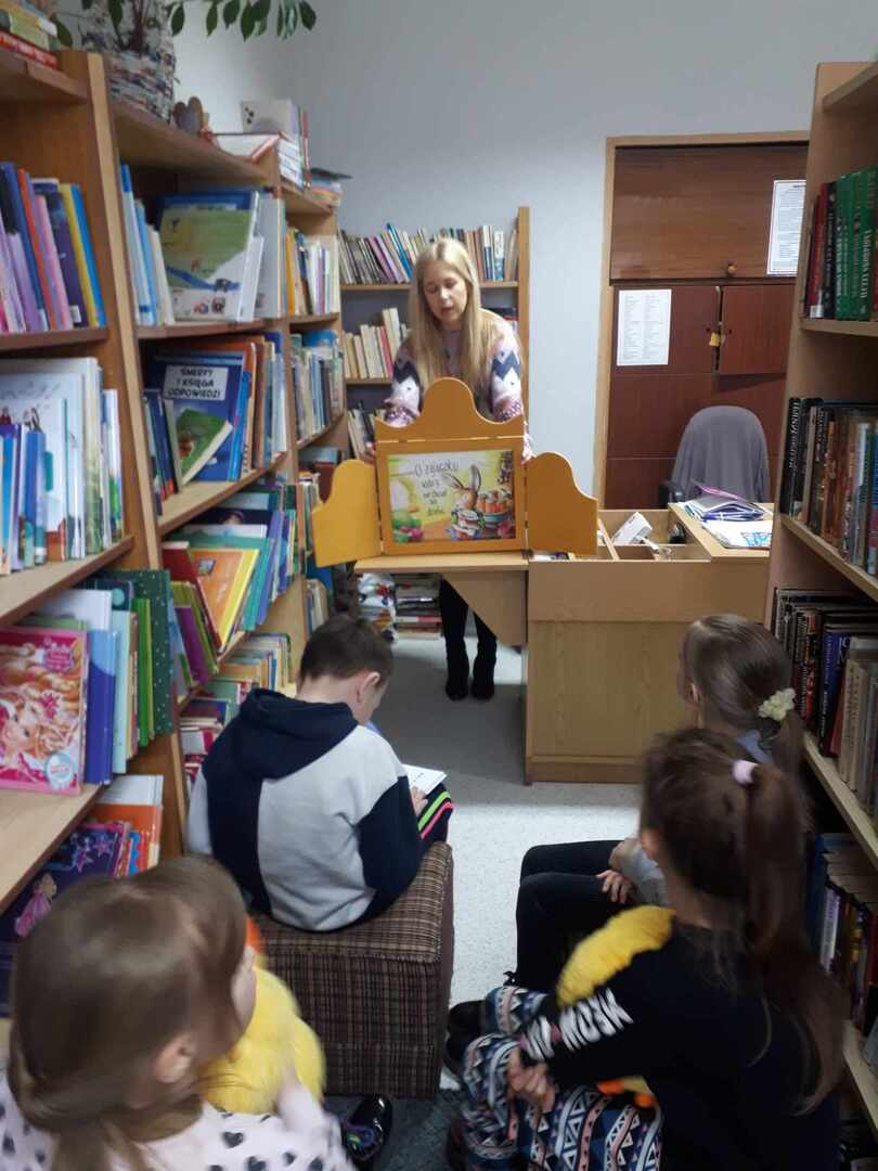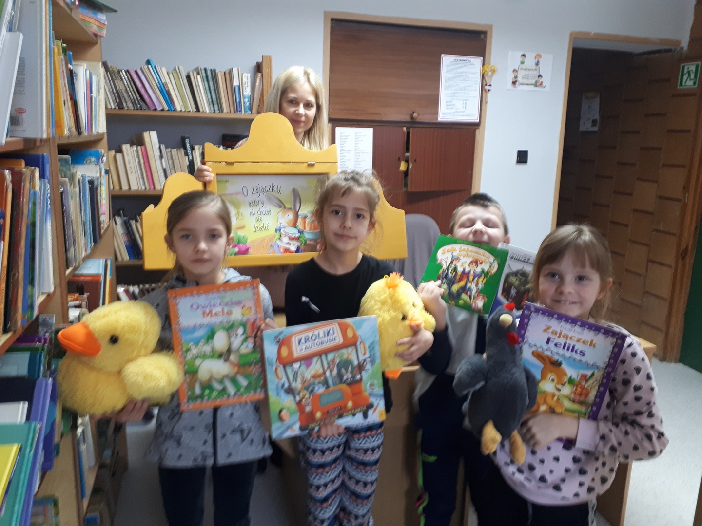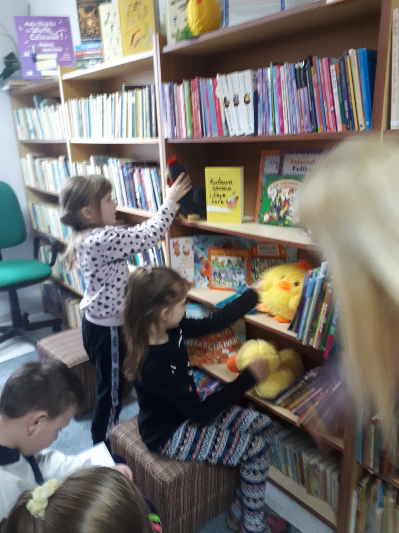 Uczniowie kl.1 poznawali publikacje książkowe o zwierzętach, obejrzeli teatrzyk pt."O zajączku, który nie chciał się dzielić", rozwiązywali zagadki i inne wielkanocne zadania. Wizyta w Bibliotece Publicznej w Mieleszynie wprowadziła uczniów w świąteczny nastrój i zachęciła do wypożyczania ciekawych książek. Dziękujemy Pani Oldze Hajkowskiej za przeprowadzenie ciekawych zajęć bibliotecznych.