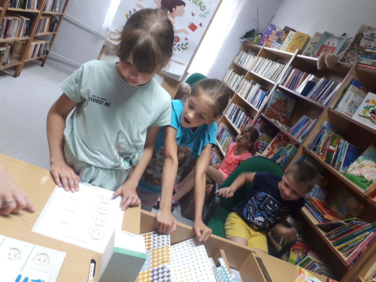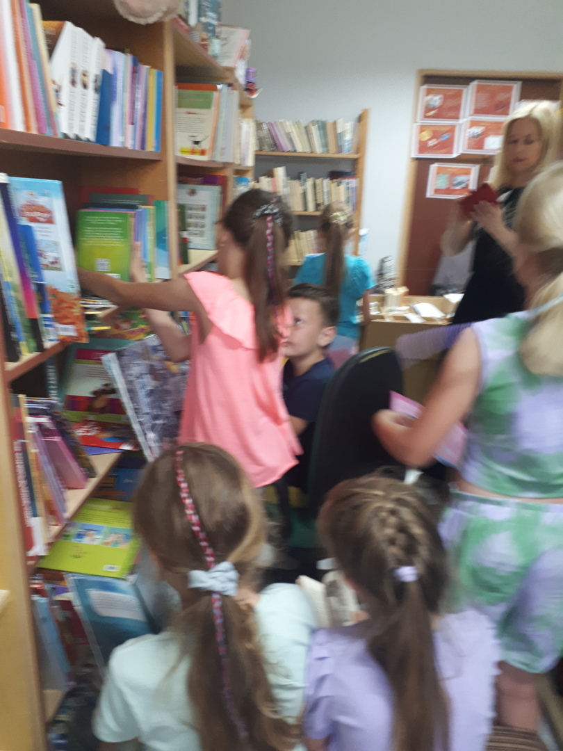 Pierwszoklasiści odwiedzili dziś Gminną Bibliotekę Publiczną w Mieleszynie. Tematem przewodnim spotkania były emocje, które towarzyszą człowiekowi każdego dnia. Uczniowie wysłuchali z uwagą opowiadania, rozwiązywali zagadki i opowiadali o swoich emocjach związanych z różnymi sytuacjami. Na koniec z wielką chęcią zapoznały się z książkami z działu dziecięcego.