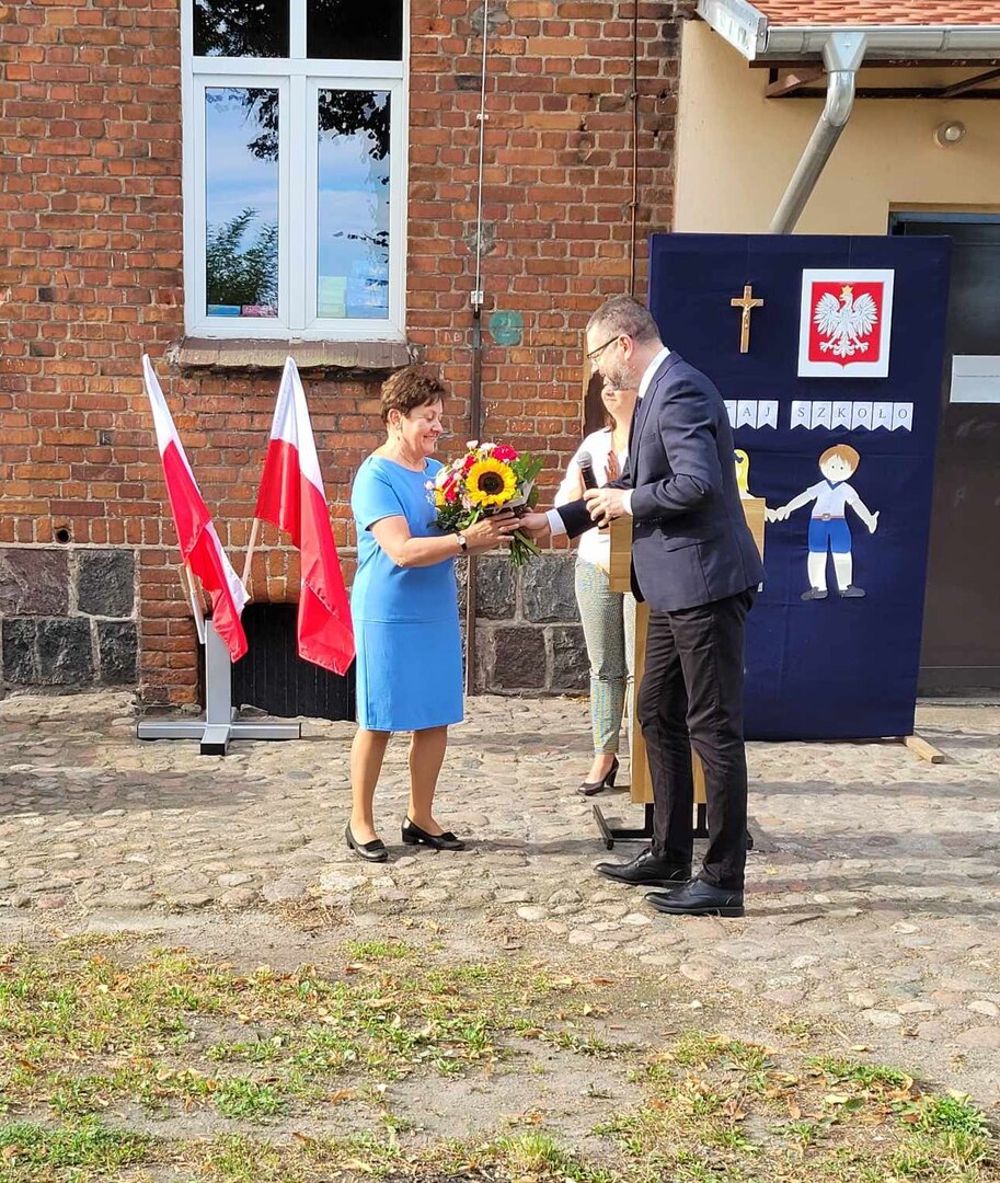 Podczas uroczystości Pan Artur Hańczak - Wójt Gminy Mieleszyn pożegnał Panią Wioletę Mataczyńską