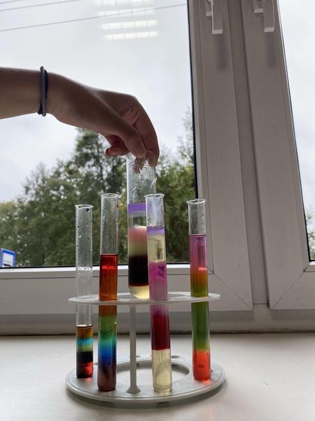 Uczniowie klasy VII potrafią badać gęstość cieczy, wykonując ciekawe doświadczenia.