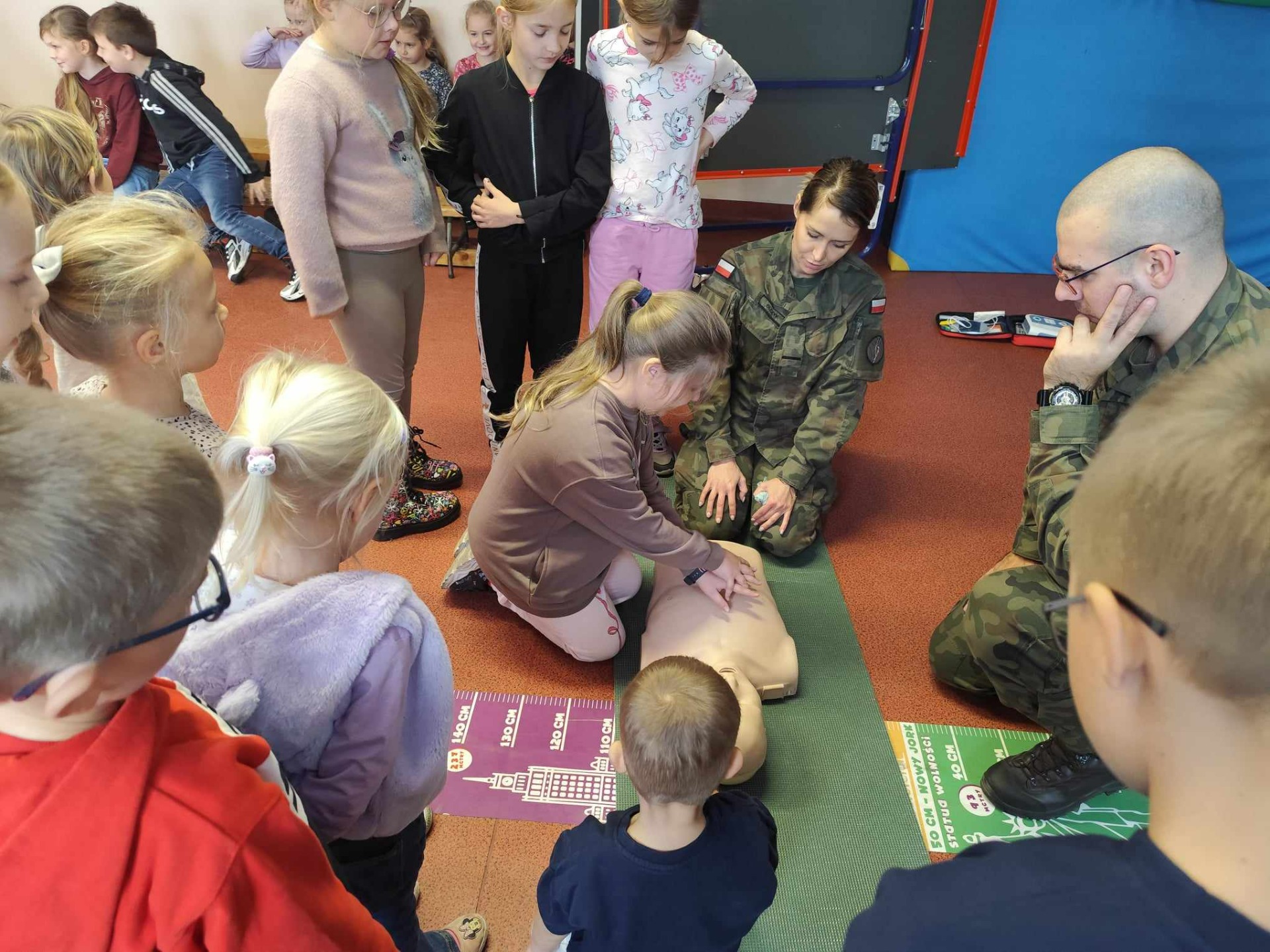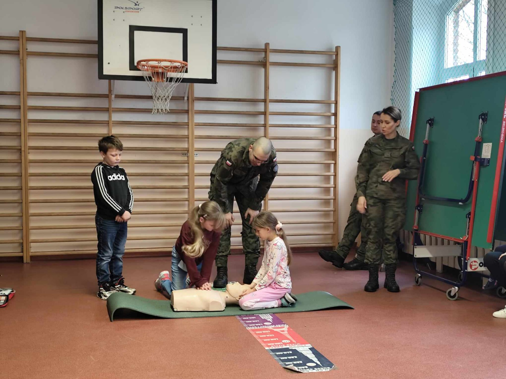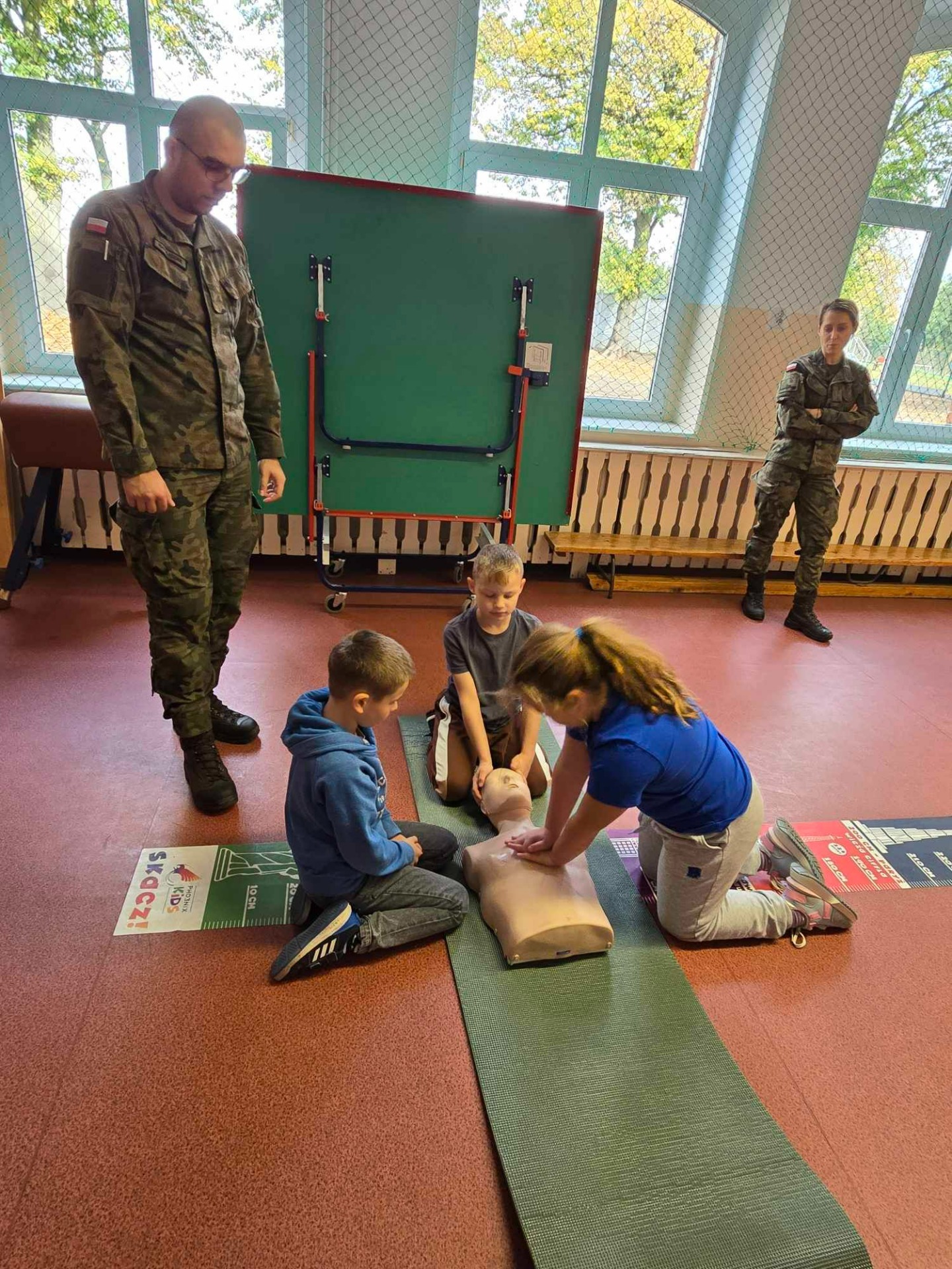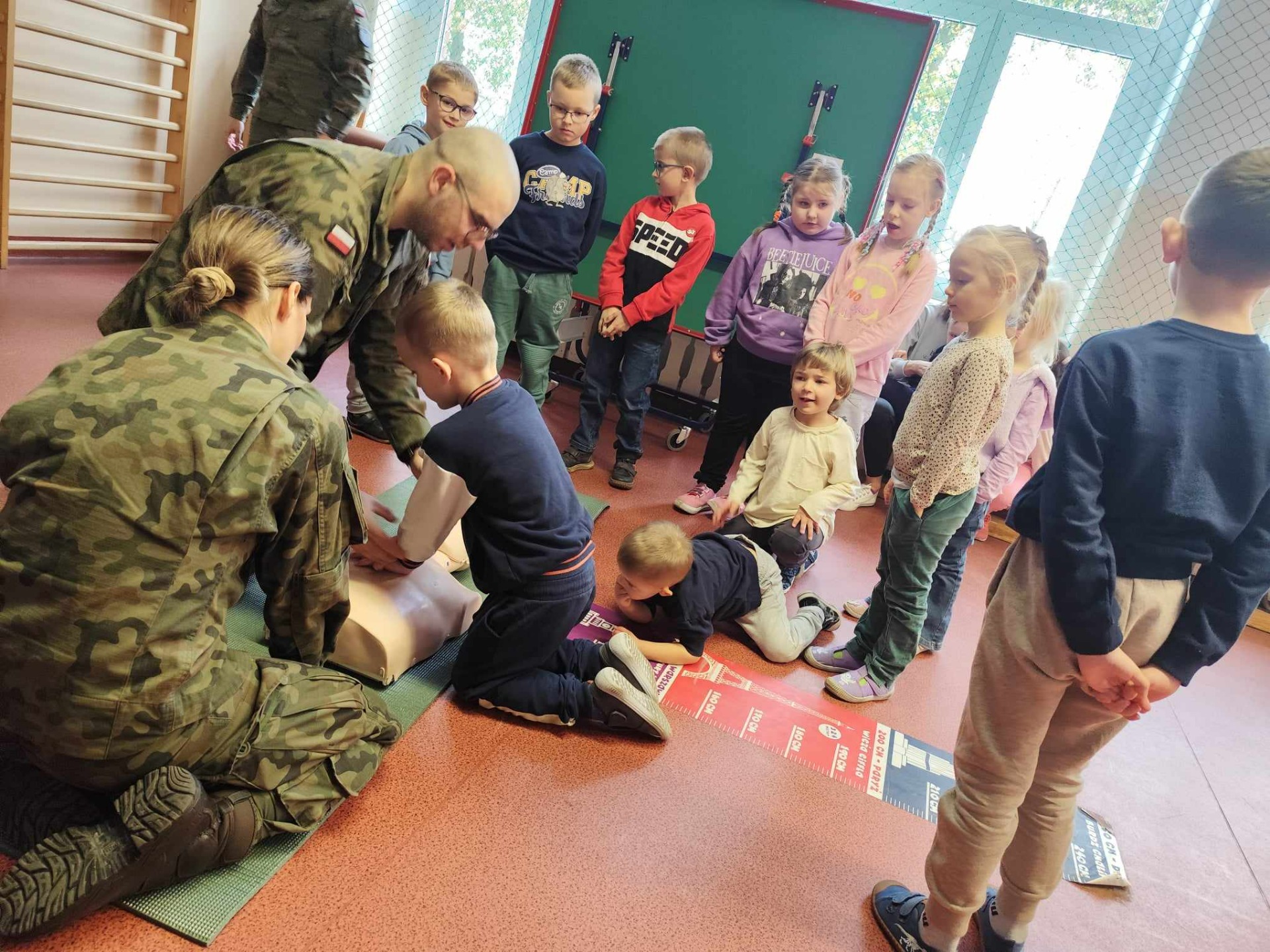 Uczniowie naszej szkoły oraz dzieci z oddziału przedszkolnego wzięli udział w programie edukacyjno-obronnym "Edukacja z wojskiem. Edycja II", którego celem było popularyzowanie wiedzy z obszaru ratownictwa medycznego. Program ten przygotowało i wspólnie realizuje Ministerstwo Edukacji Narodowej oraz Ministerstwo Obrony Narodowej
