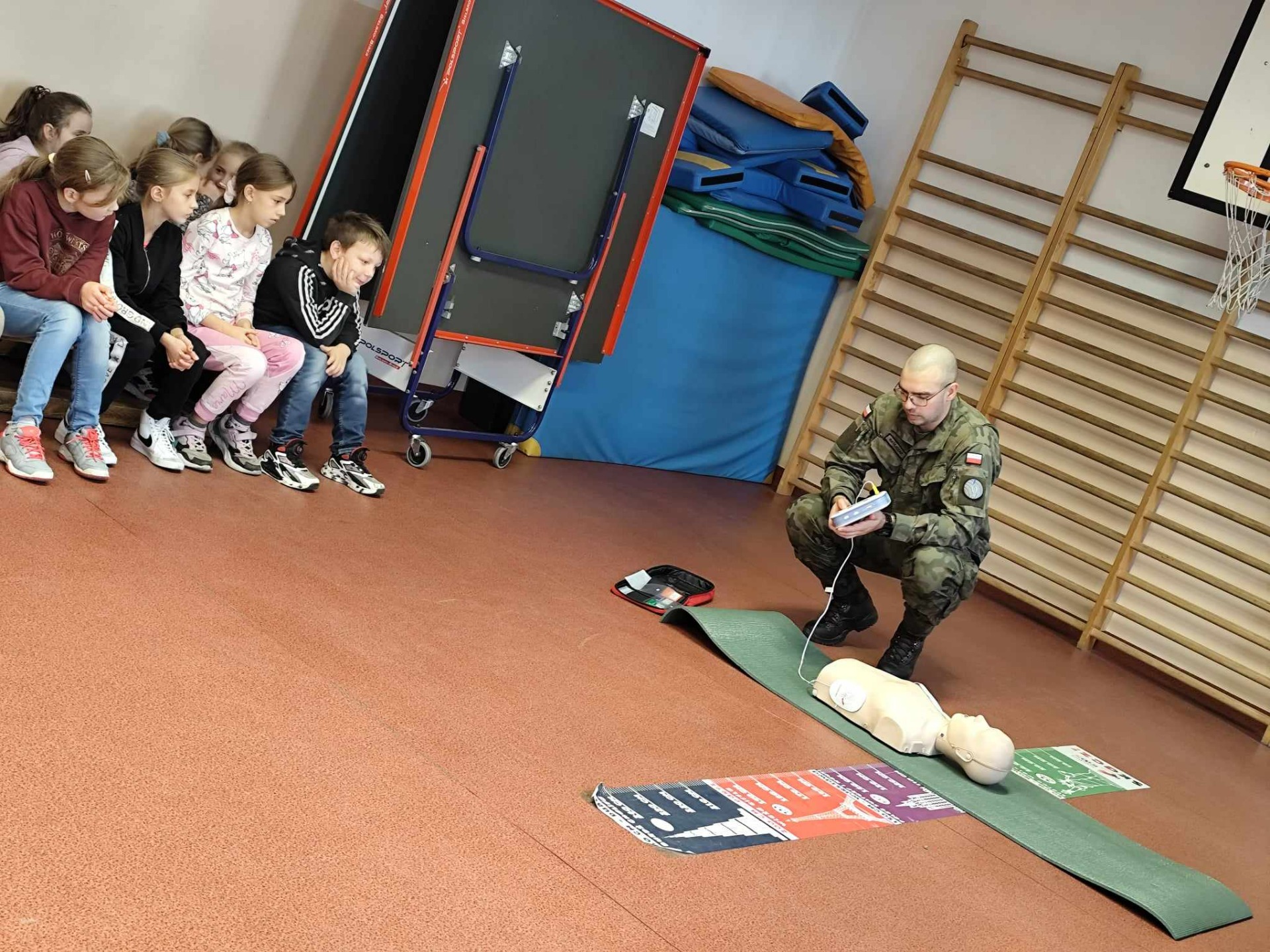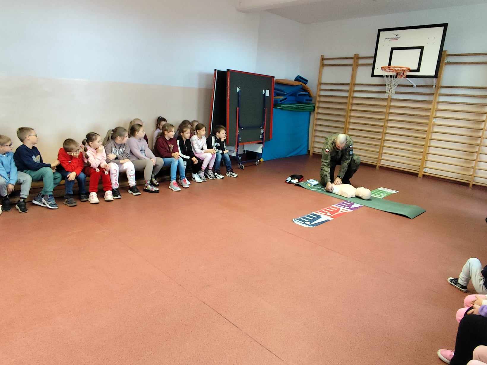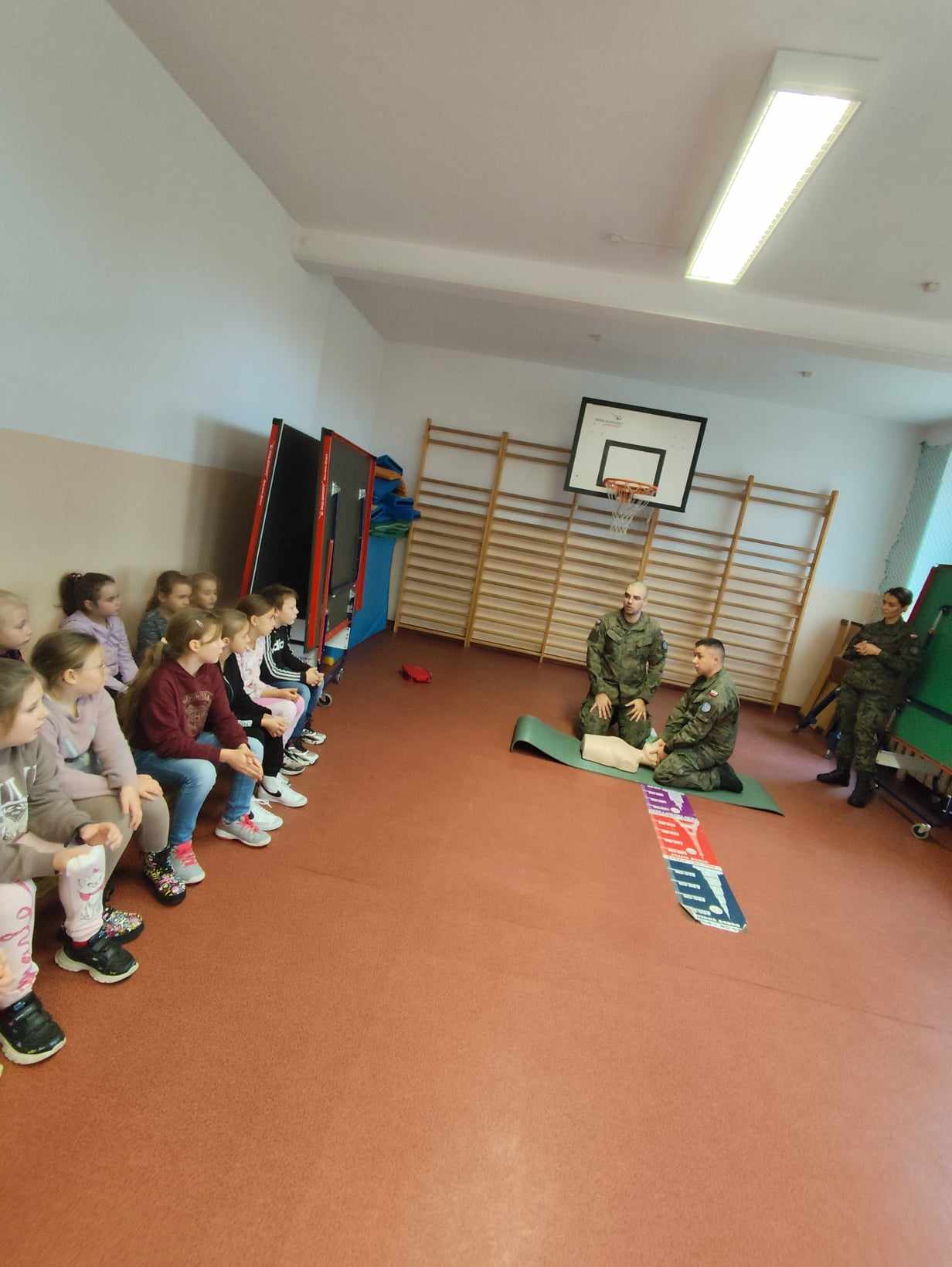 Uczniowie naszej szkoły oraz dzieci z oddziału przedszkolnego wzięli udział w programie edukacyjno-obronnym "Edukacja z wojskiem. Edycja II", którego celem było popularyzowanie wiedzy z obszaru ratownictwa medycznego. Program ten przygotowało i wspólnie realizuje Ministerstwo Edukacji Narodowej oraz Ministerstwo Obrony Narodowej