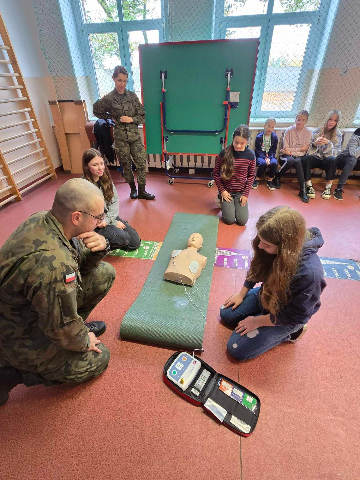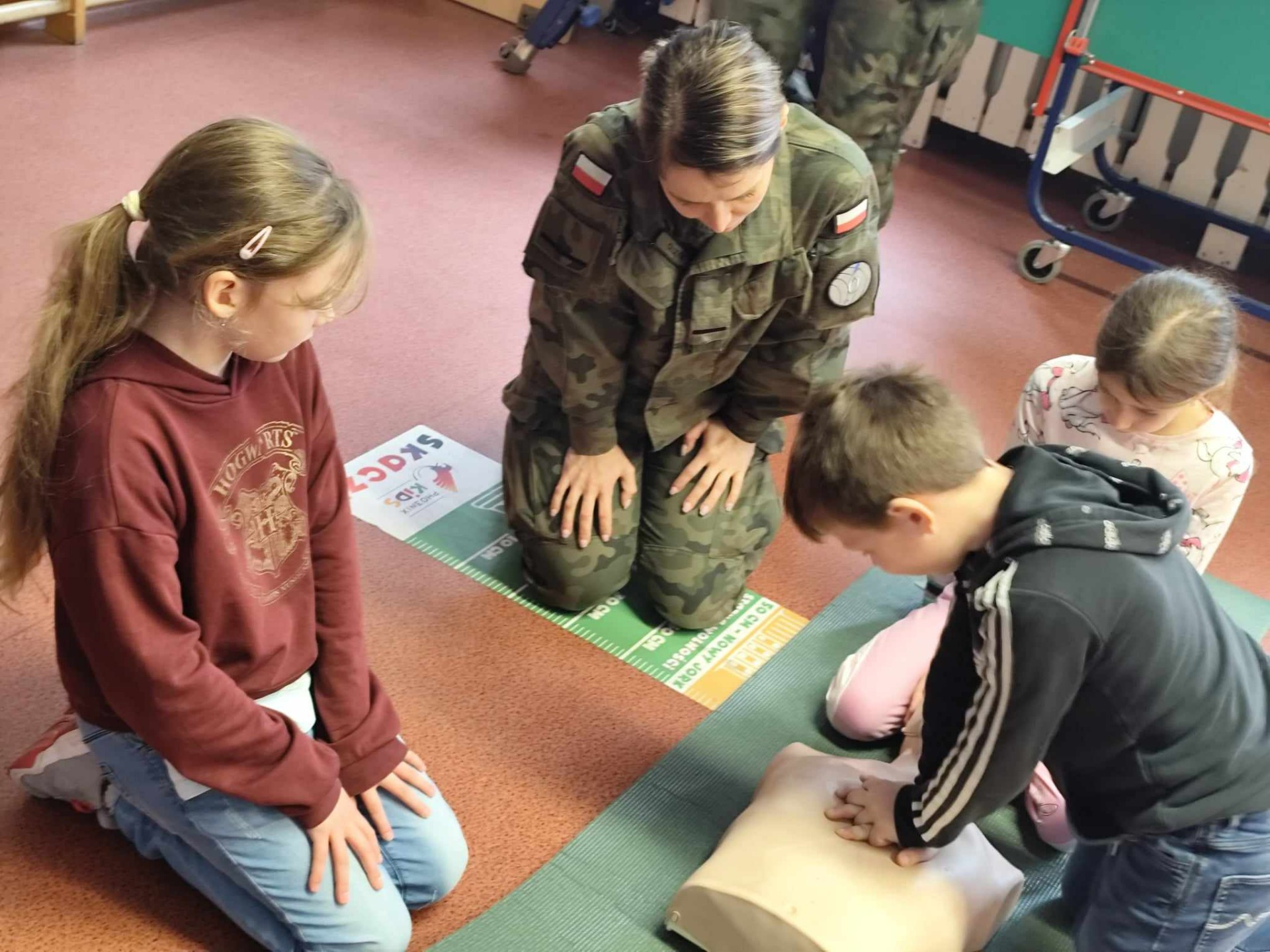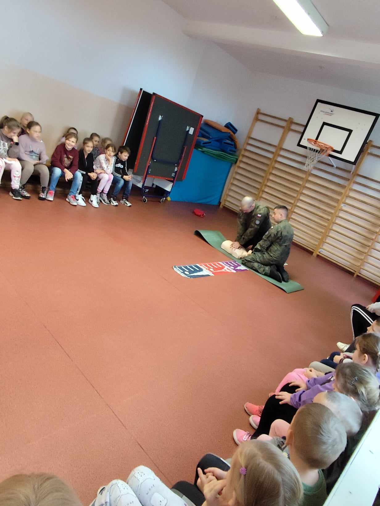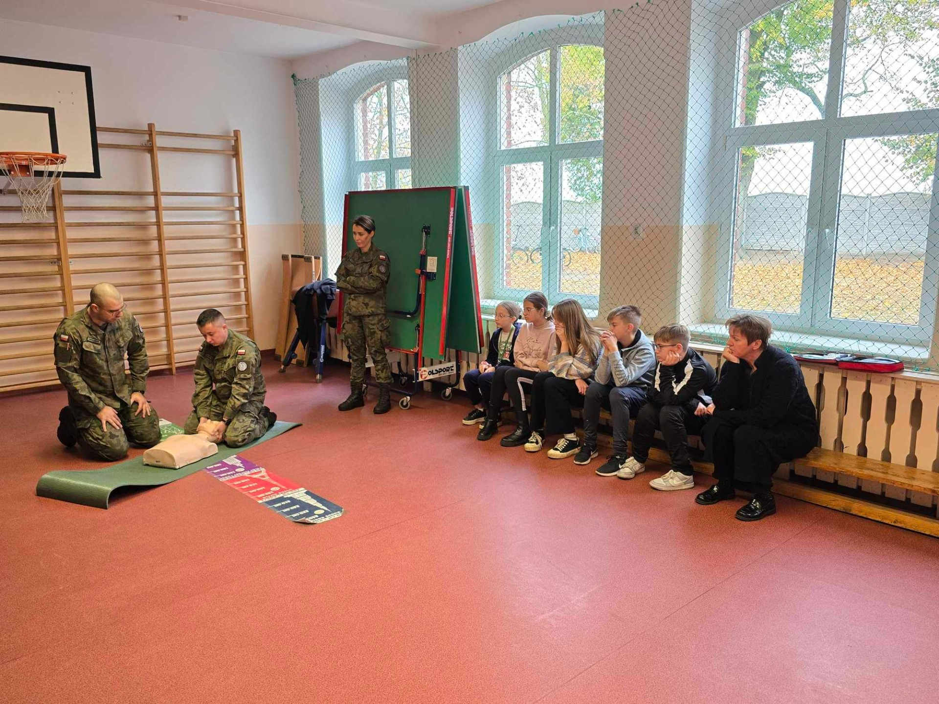 Uczniowie naszej szkoły oraz dzieci z oddziału przedszkolnego wzięli udział w programie edukacyjno-obronnym "Edukacja z wojskiem. Edycja II", którego celem było popularyzowanie wiedzy z obszaru ratownictwa medycznego. Program ten przygotowało i wspólnie realizuje Ministerstwo Edukacji Narodowej oraz Ministerstwo Obrony Narodowej