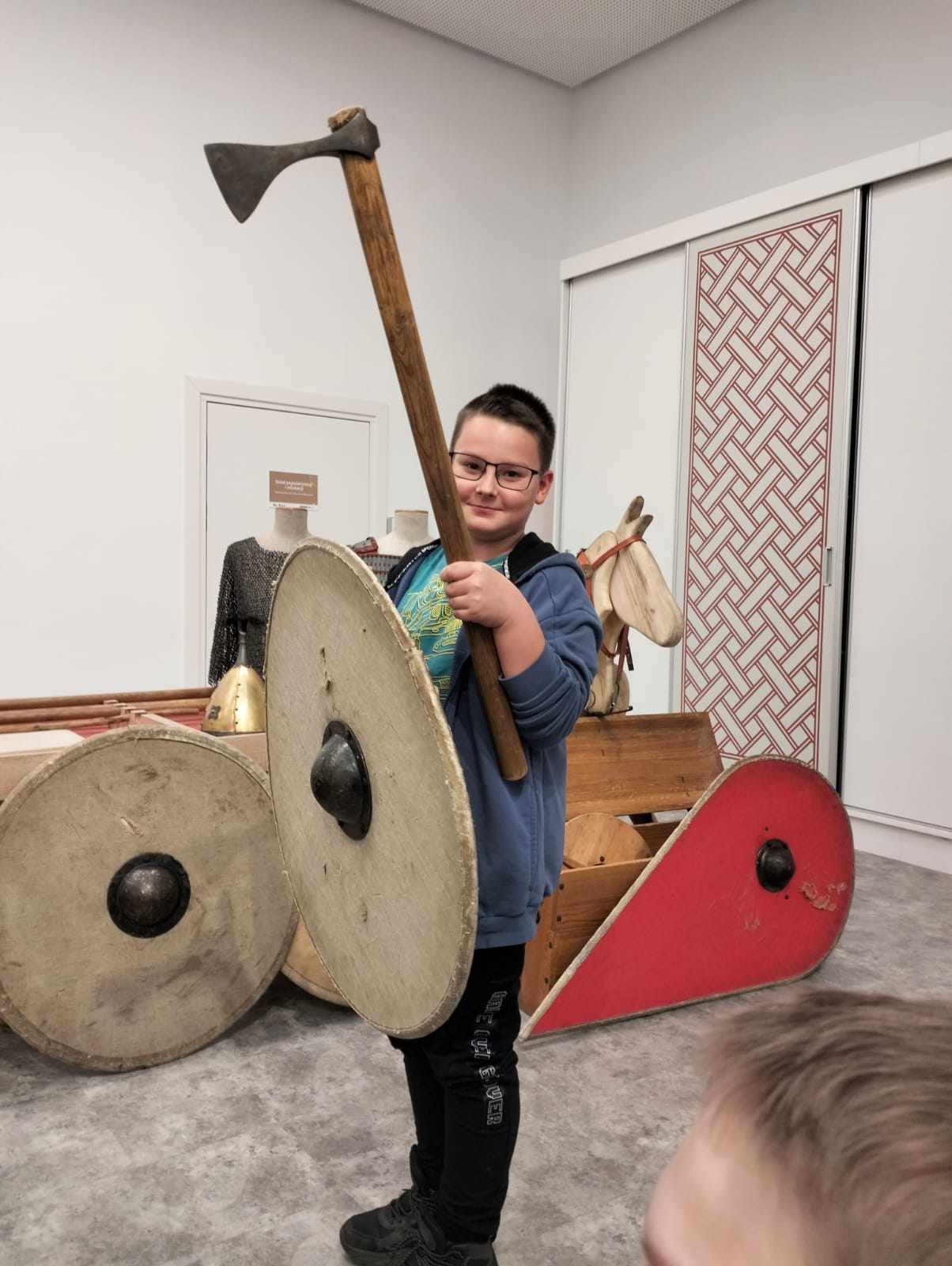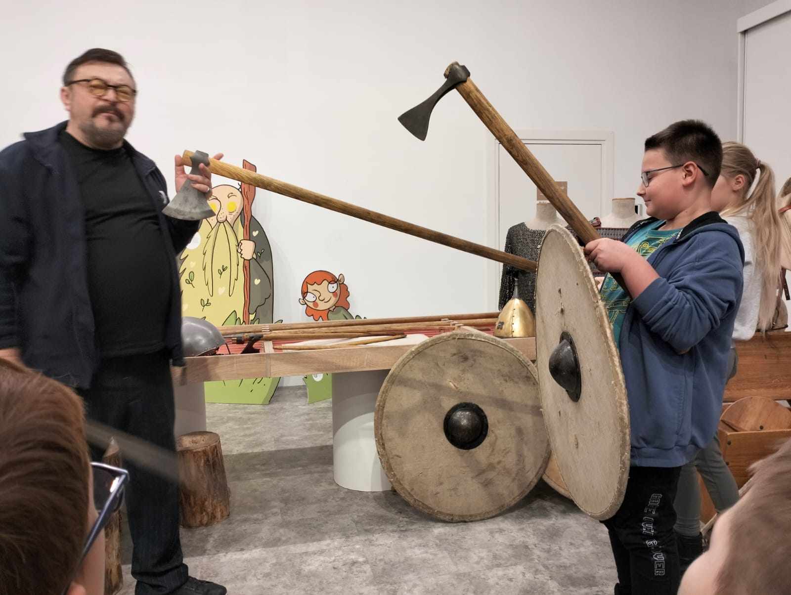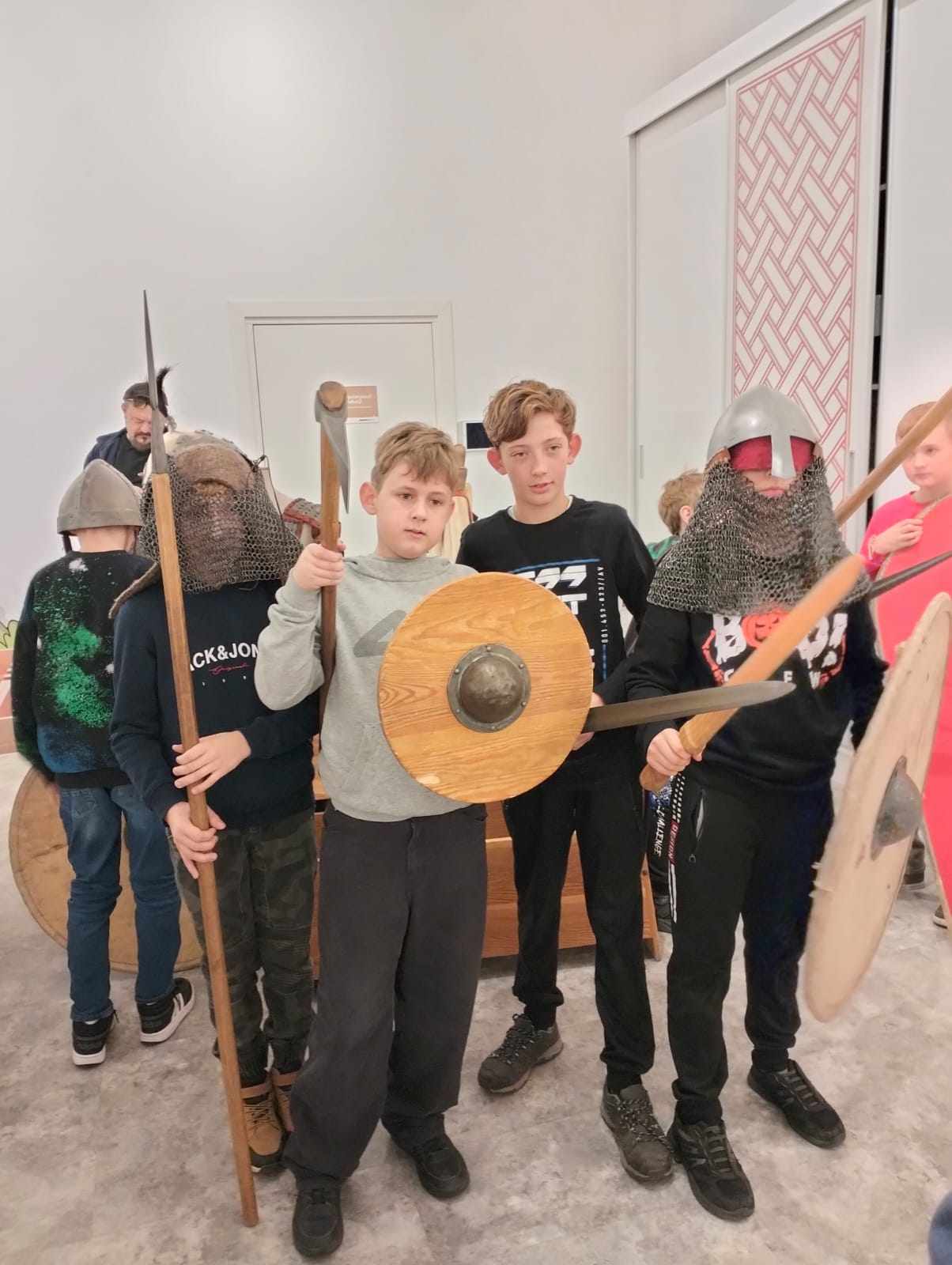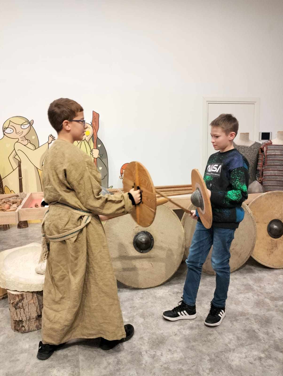 Pobyt uczniów klas 4-5 w Muzeum Początków Państwa Polskiego w Gnieźnie. Udział w warsztatach na temat biżuterii średniowiecza oraz żywej lekcji historii dotyczącej przedmiotów codziennego użytku i broni