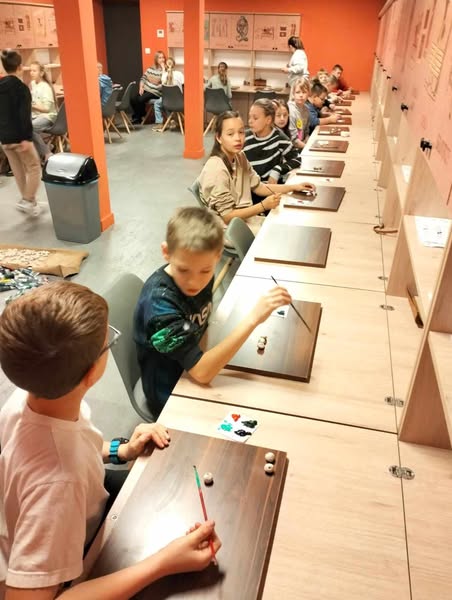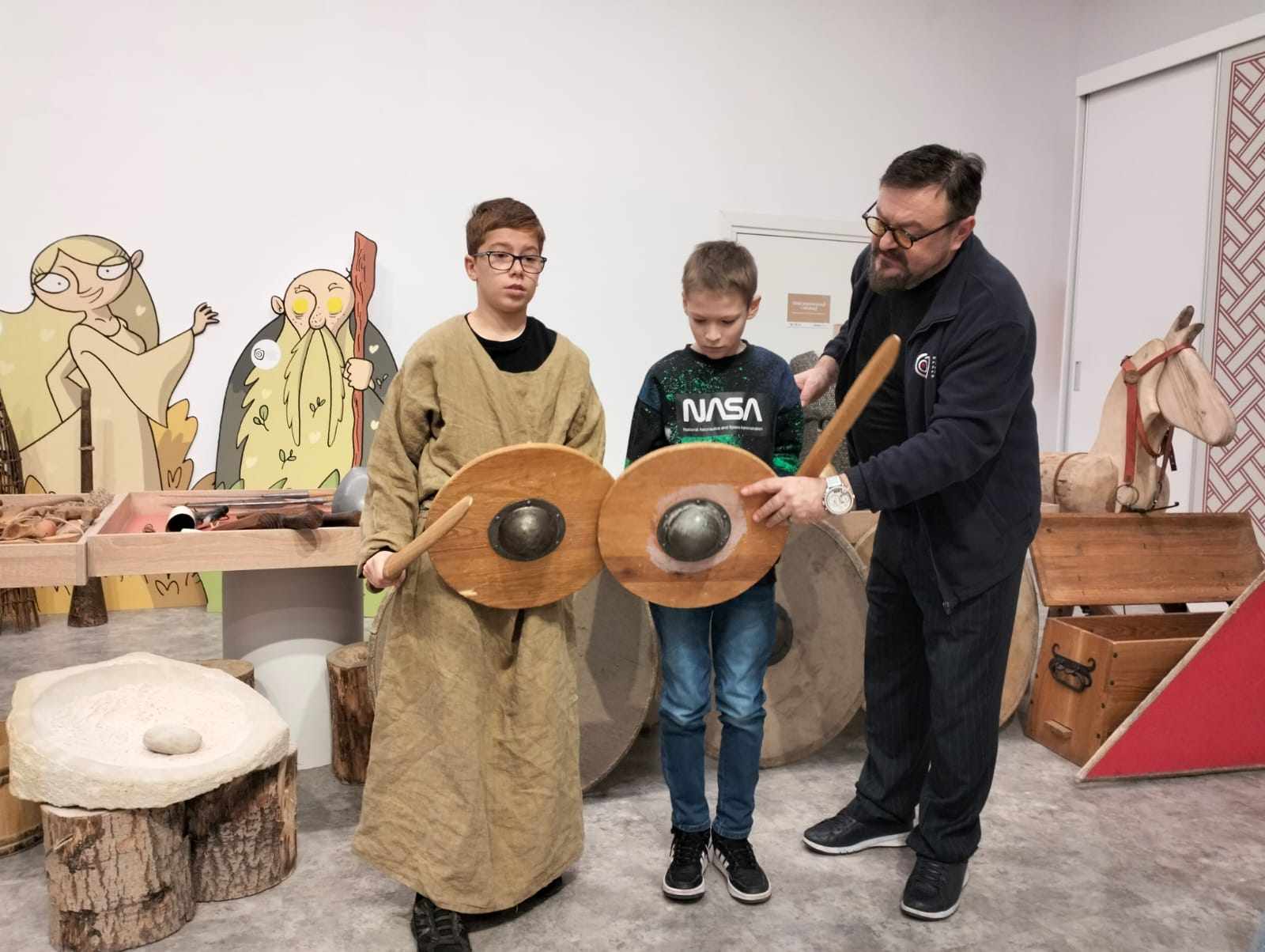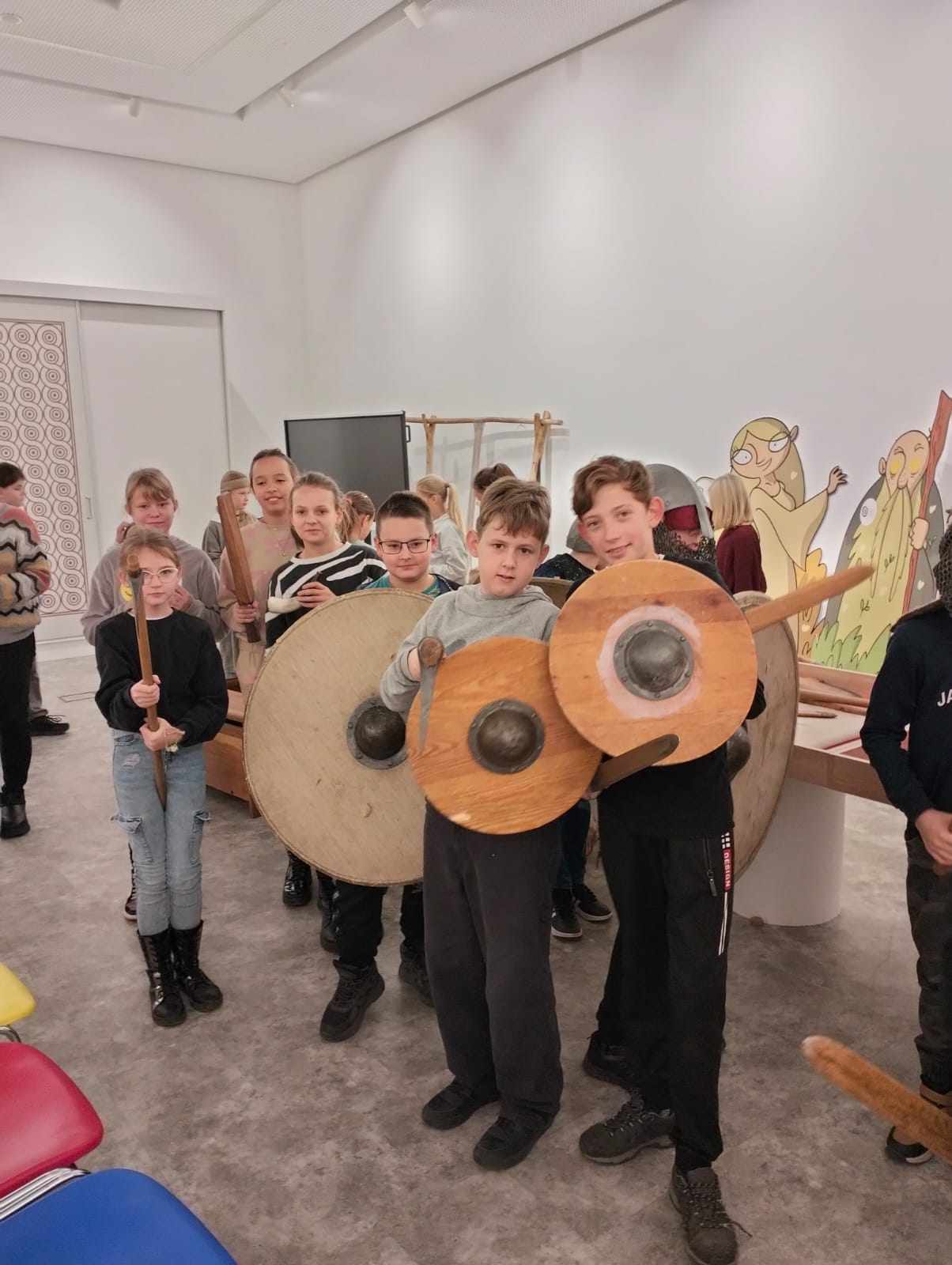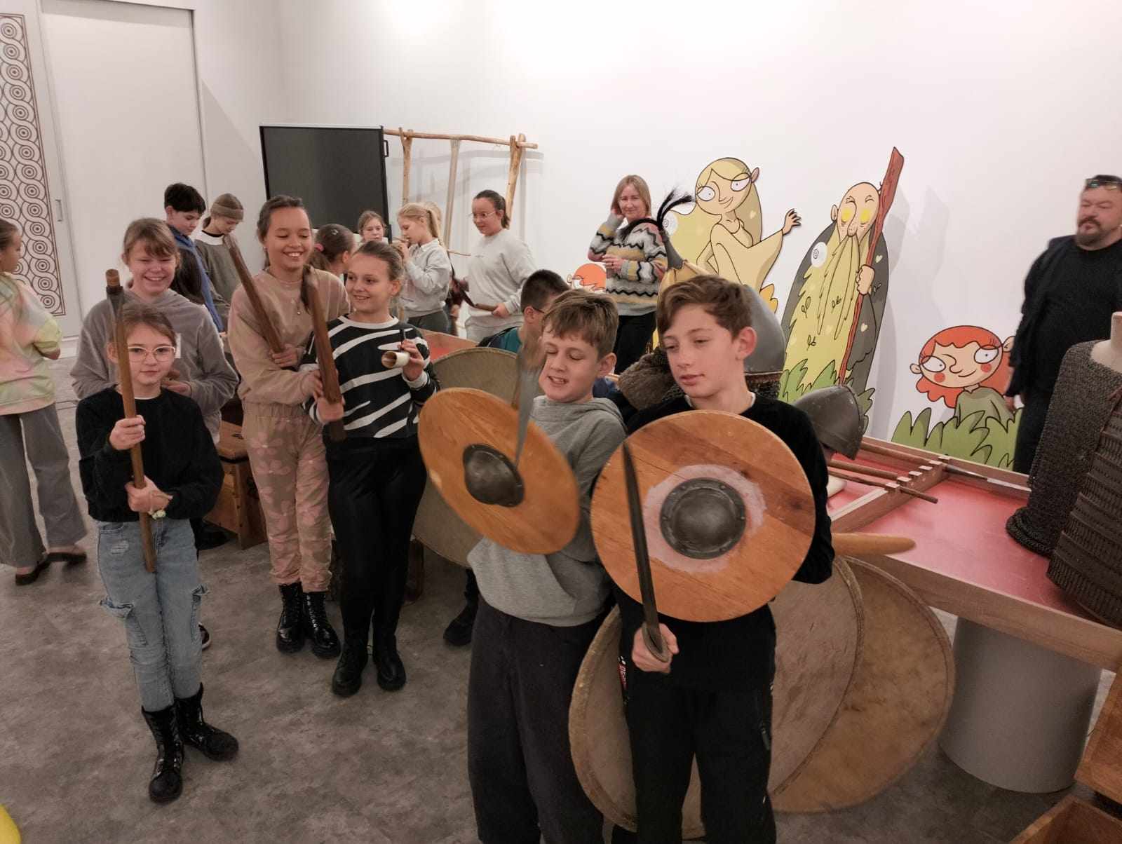 Pobyt uczniów klas 4-5 w Muzeum Początków Państwa Polskiego w Gnieźnie. Udział w warsztatach na temat biżuterii średniowiecza oraz żywej lekcji historii dotyczącej przedmiotów codziennego użytku i broni