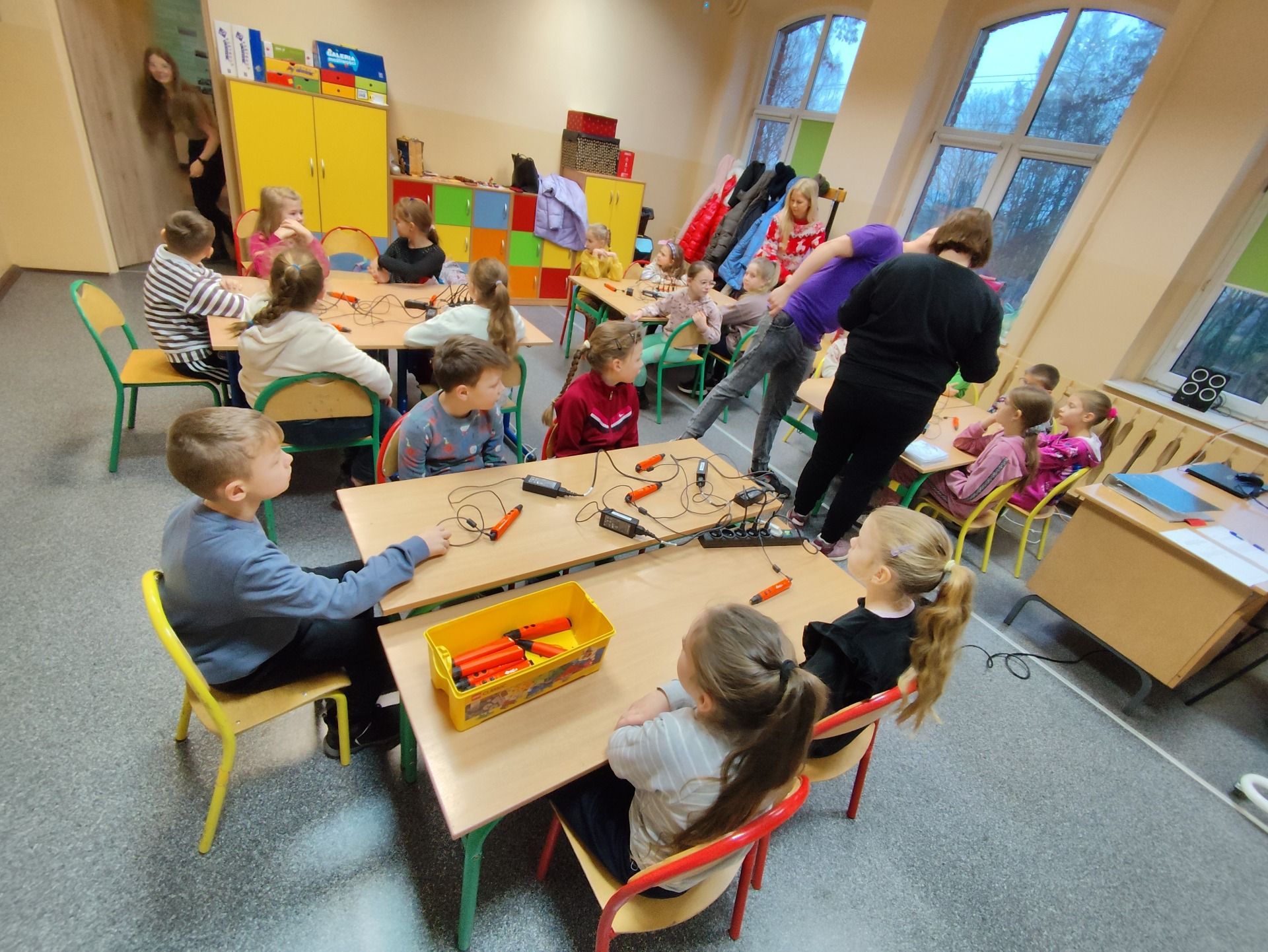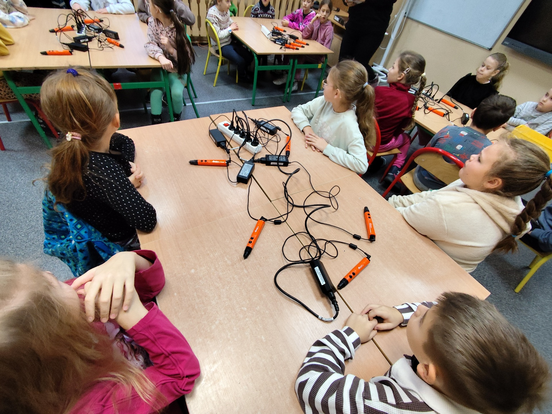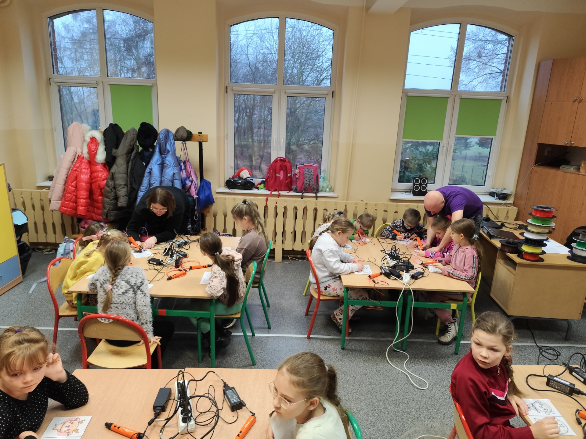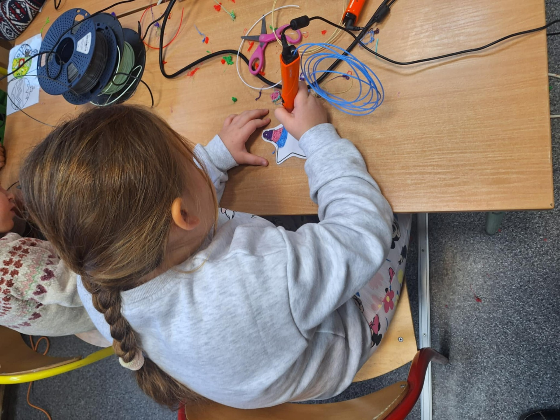 12 grudnia uczniowie klas 1- 4 na zaproszenie Gminnej Biblioteki Publicznej w Mieleszynie wzięli udział w warsztatach rysowania długopisami 3D, które były przeprowadzane przez ZiP Zabawa i Programowanie. Dzieci tworzyły wzory o tematyce świątecznej. Podczas warsztatów rozwijały swoją kreatywność i wyobraźnię. Uczyły się także staranności i cierpliwości. Udane wytwory m.in.: renifery, bombki, choinki, skrzaty były źródłem radości z pomyślnie wykonanych zadań.