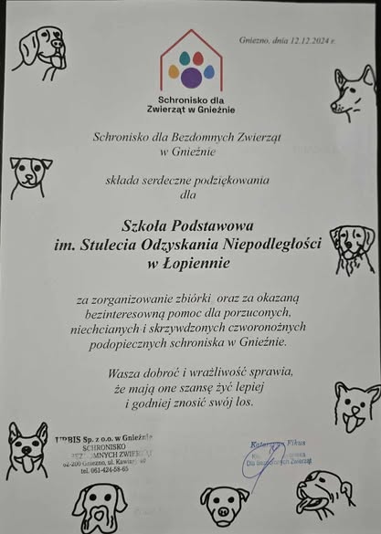 W naszej szkole odbyła się zbiórka karmy dla bezdomnych zwierząt ze schroniska w Gnieźnie, którą zorganizował Szkolny Wolontariat.
