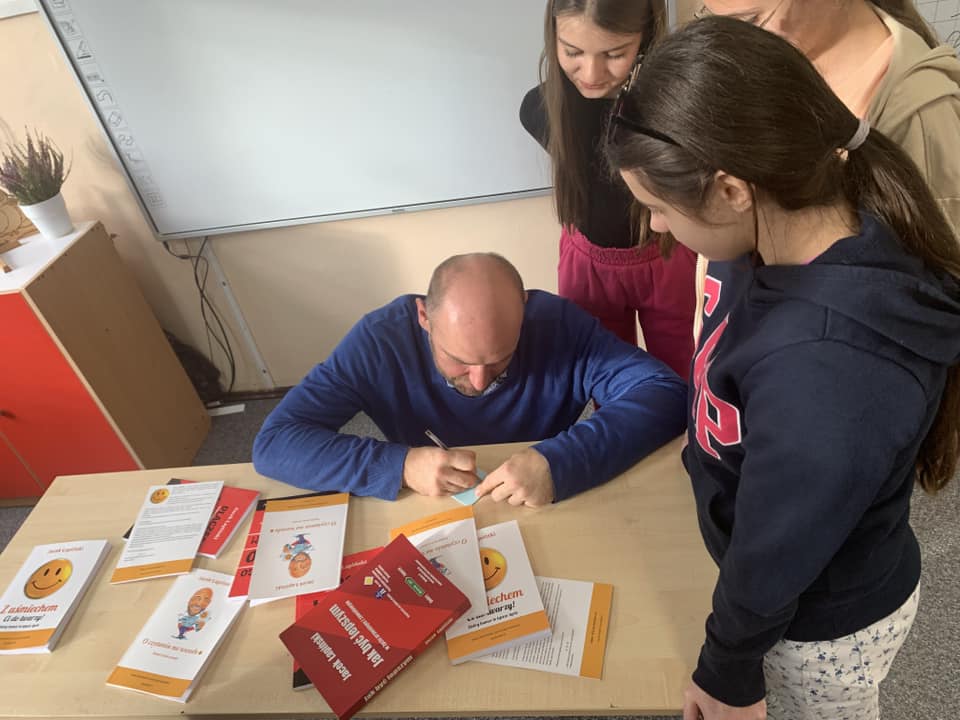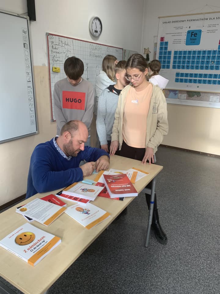 W trakcie 3 spotkań, które odbyły się w szkołach naszej gminy pan Jacek Łapiński zachęcał młodzież do rozmowy i motywował do dążenia do własnych celów, podkreślając, jak ważne są książki. Uczniowie rozmawiali z autorem o pasjach, marzeniach oraz o tym, dlaczego warto czytać i zdobywać wiedzę.