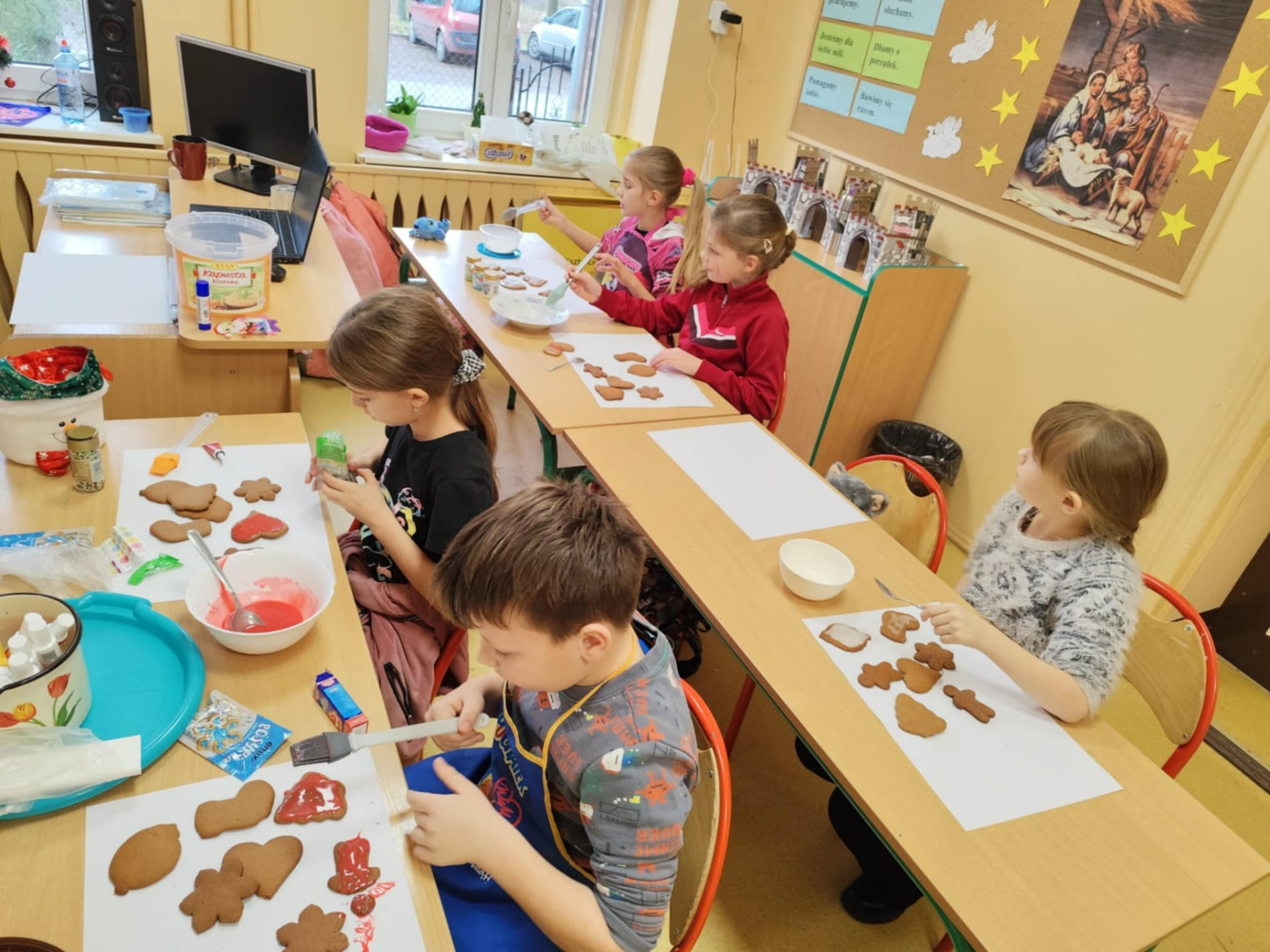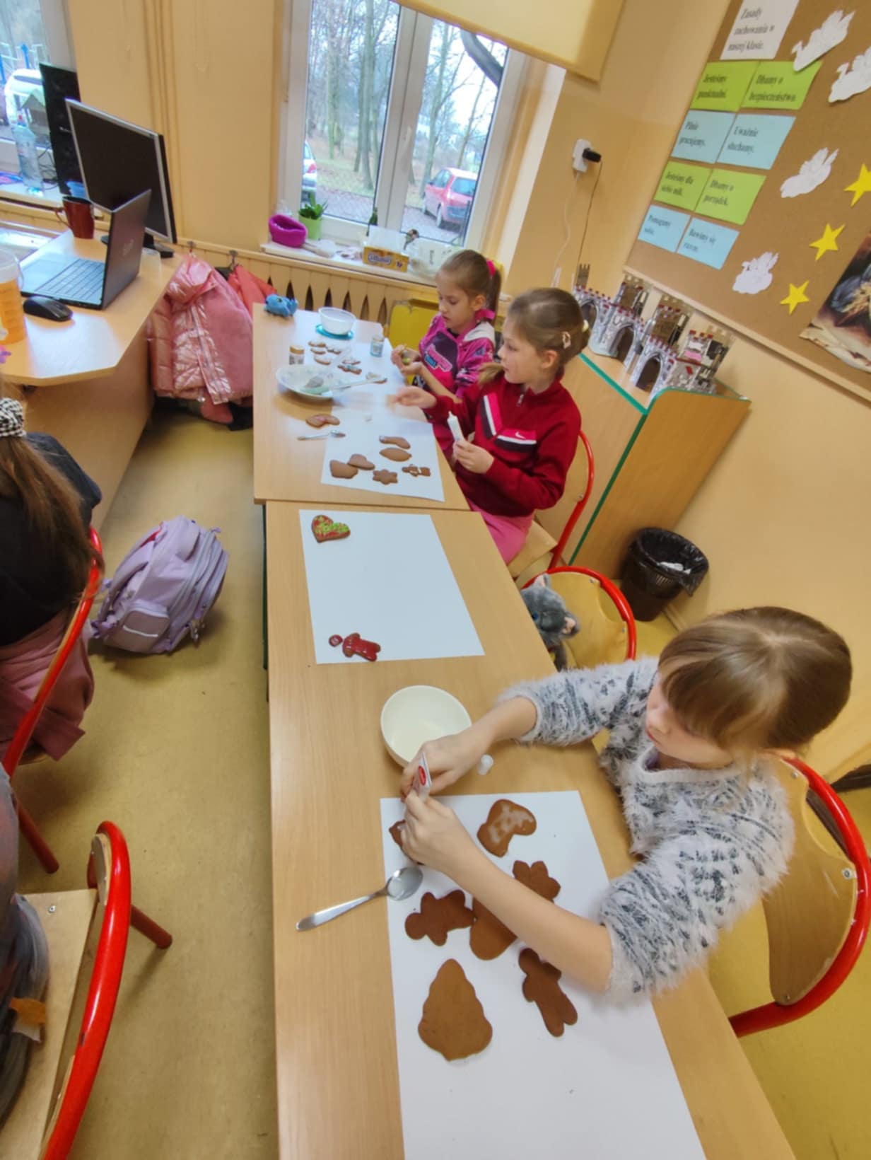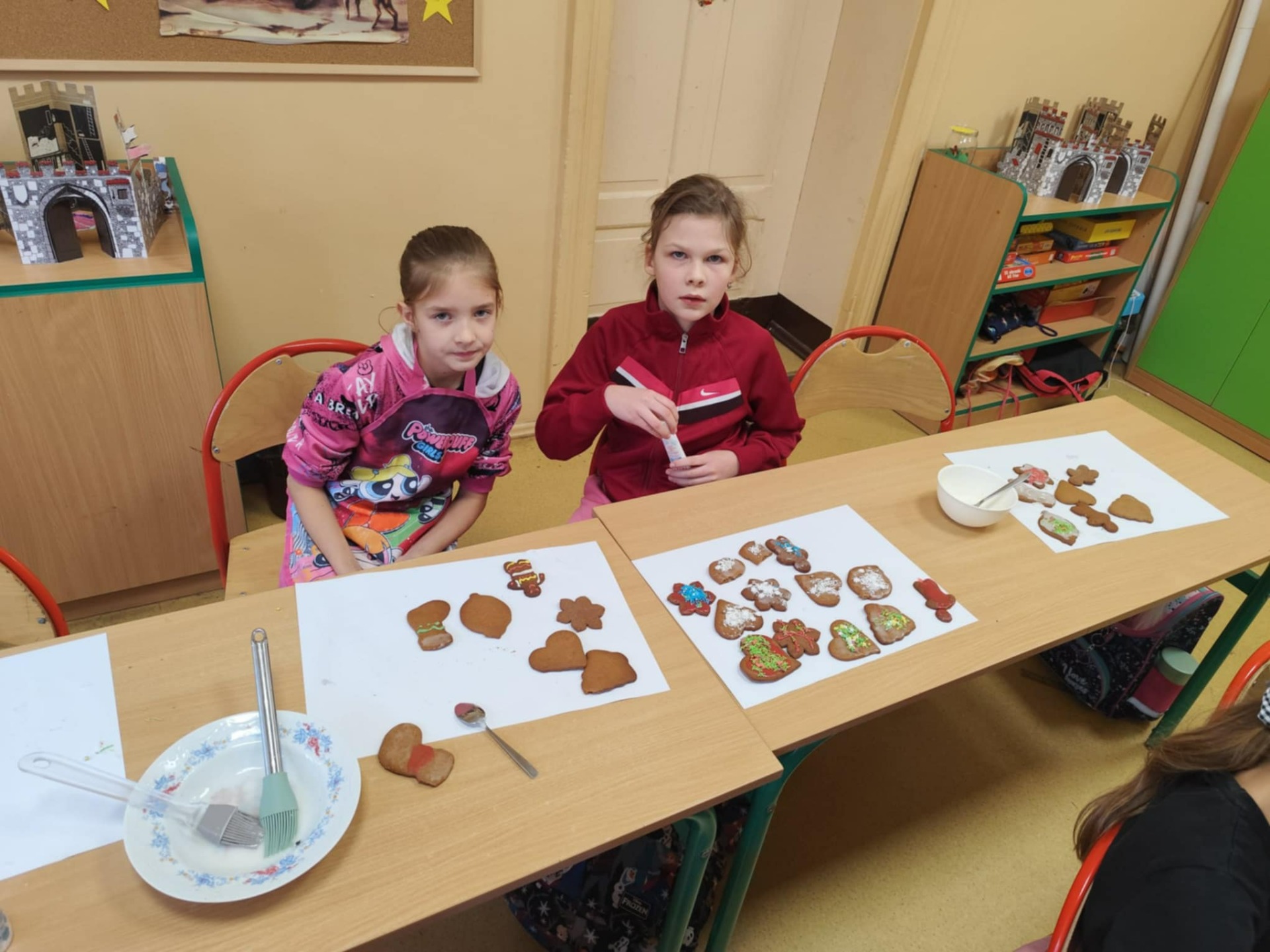 Uczniowie klasy 2 włączają się w kulinarne przygotowania świąteczne, własnoręcznie ozdabiając aromatyczne pierniki na klasowy wigilijny stół.😊🍪