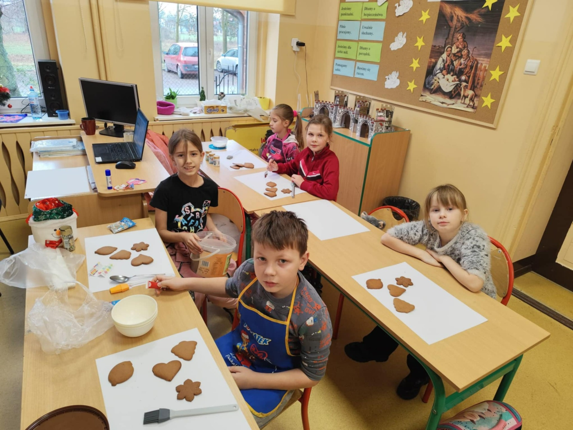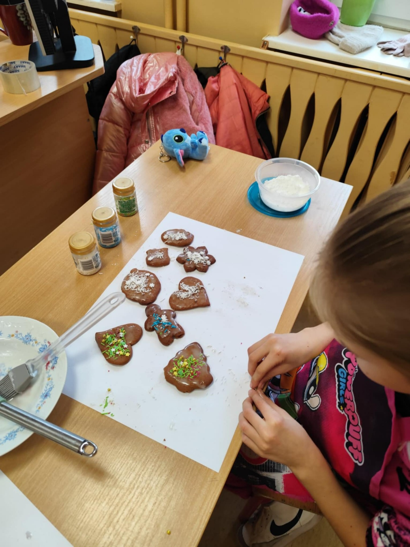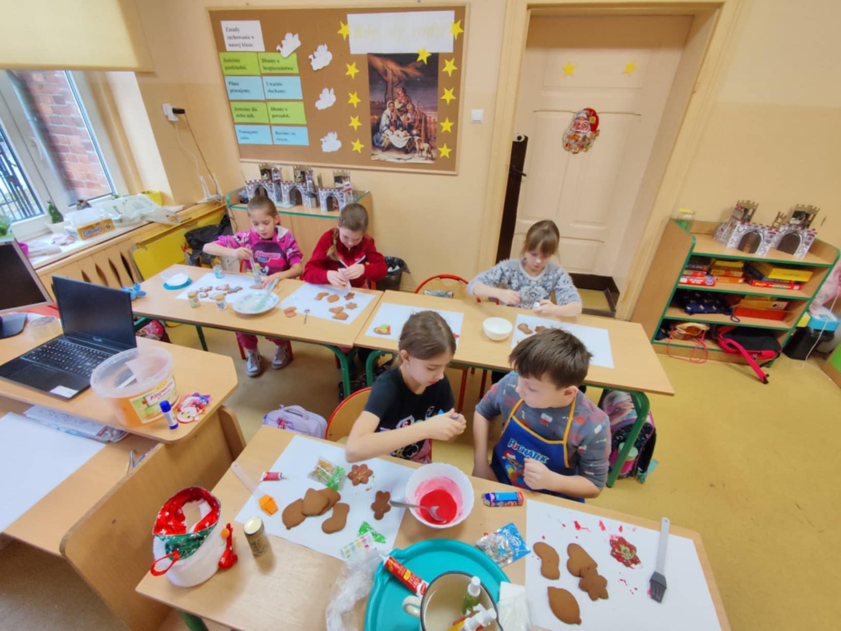 Uczniowie klasy 2 włączają się w kulinarne przygotowania świąteczne, własnoręcznie ozdabiając aromatyczne pierniki na klasowy wigilijny stół.😊🍪