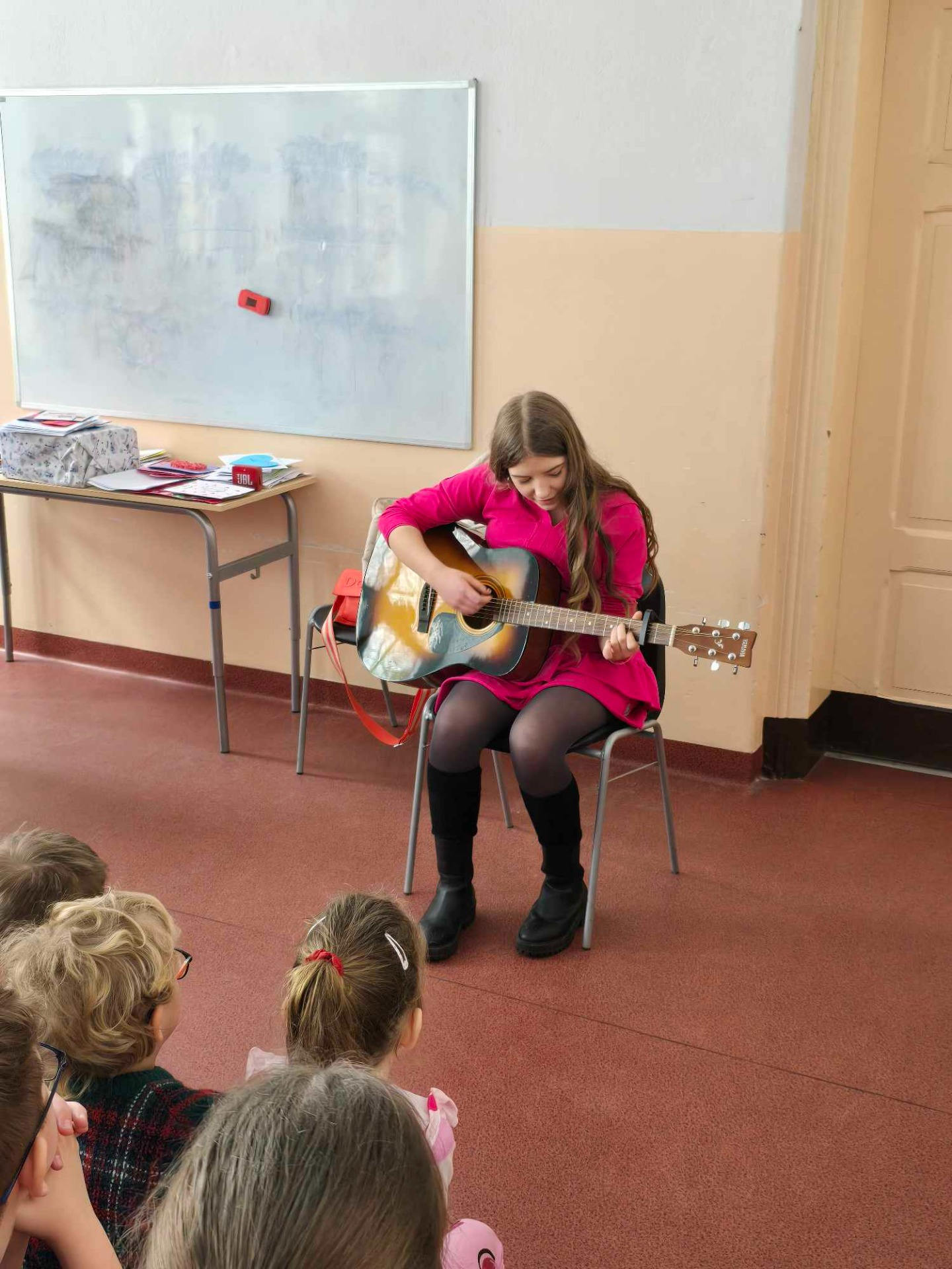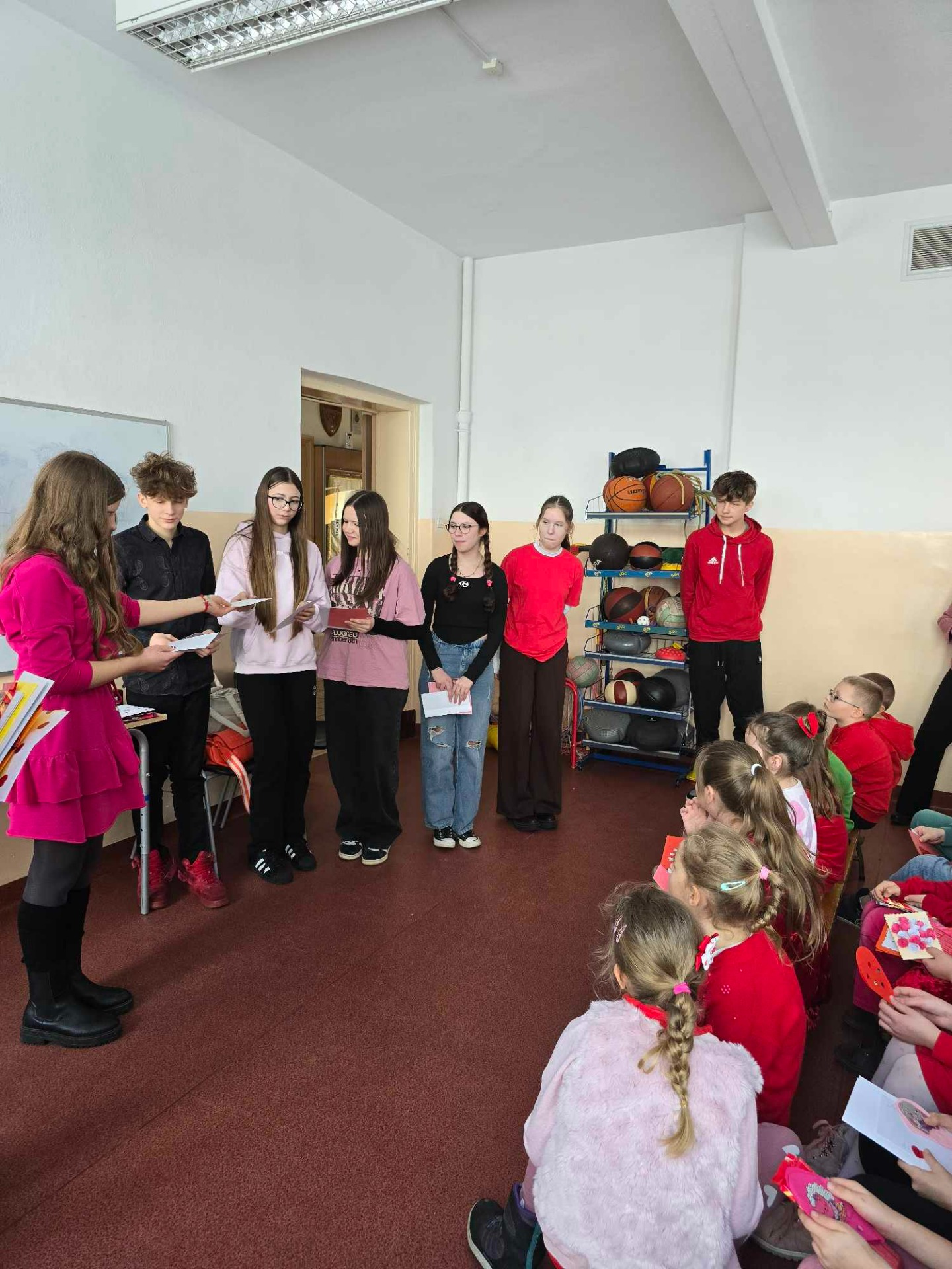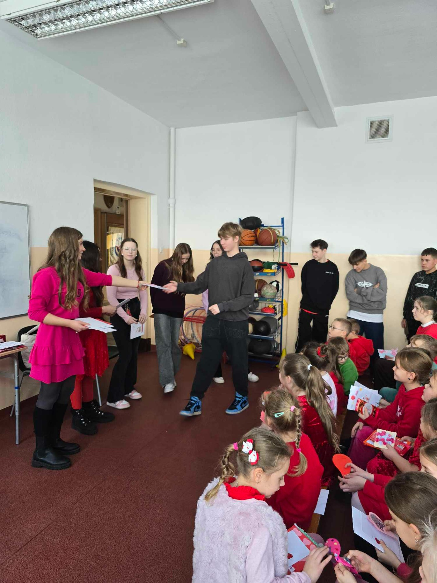 Podczas spotkania przedstawiciele SU rozdali kartki walentynkowe, a jedna z uczennic Maria Wiśniewska zagrała walentynkową piosenkę na gitarze