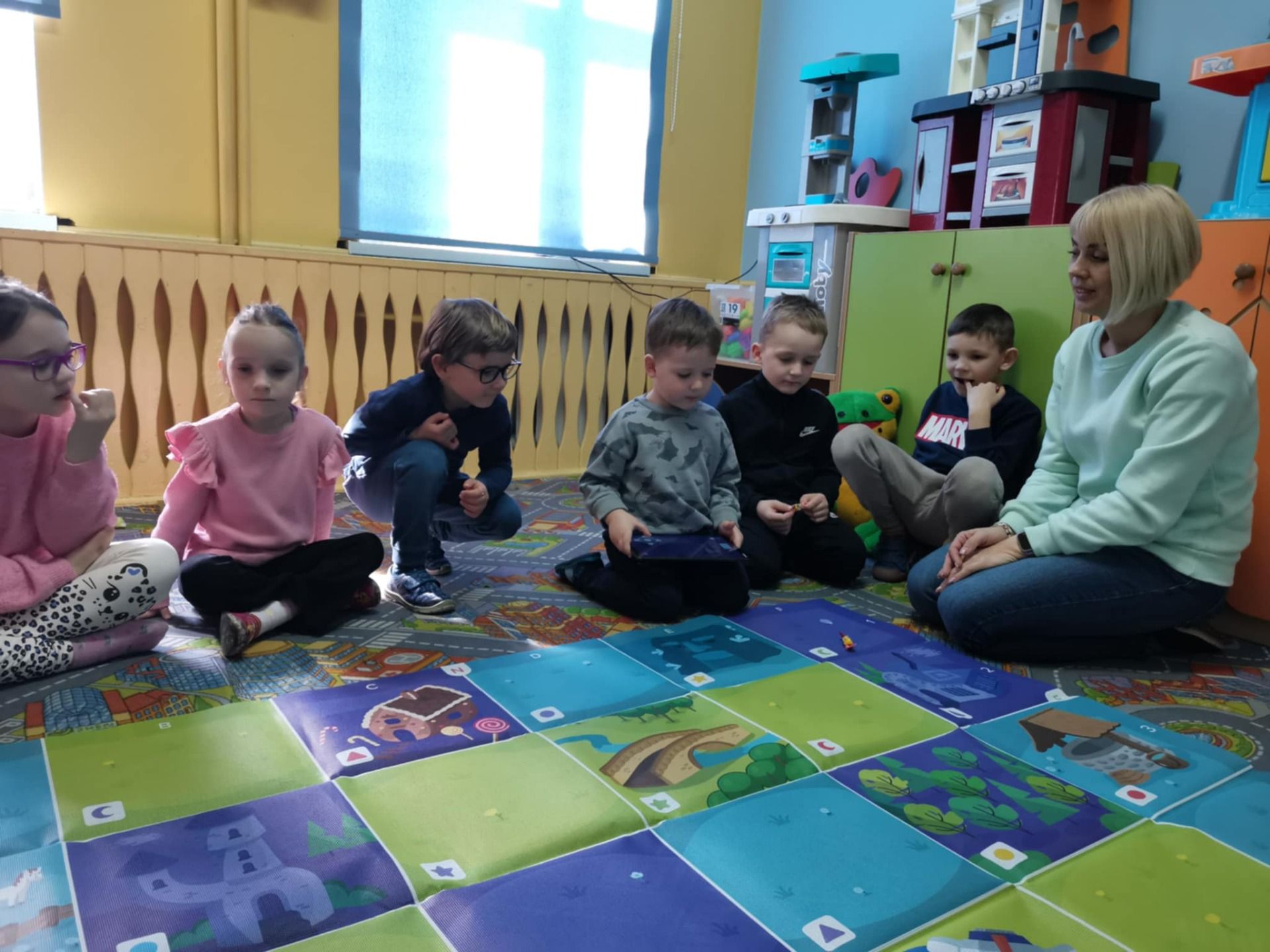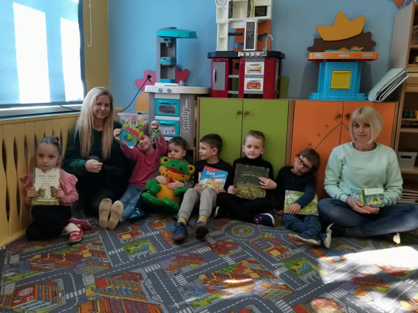 Podczas spotkania z Panią bibliotekarką Olgą Hajkowską dzieci wysłuchały opowieści o Żabce, jej leśnych przyjaciołach oraz wspaniałej mocy jednego uśmiechu. Za pomocą Photona wyznaczały trasę po edukacyjnej macie oraz rozwiązywały wiosenne zagadki. Były też pamiątkowe fotki z Żabą Moniką