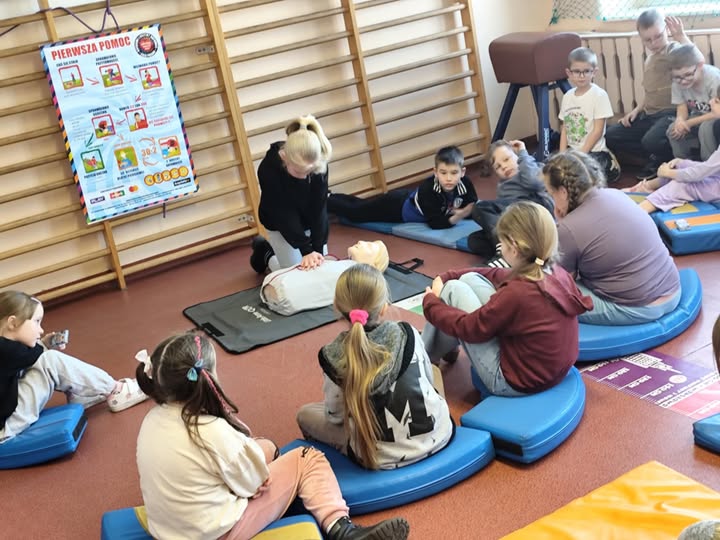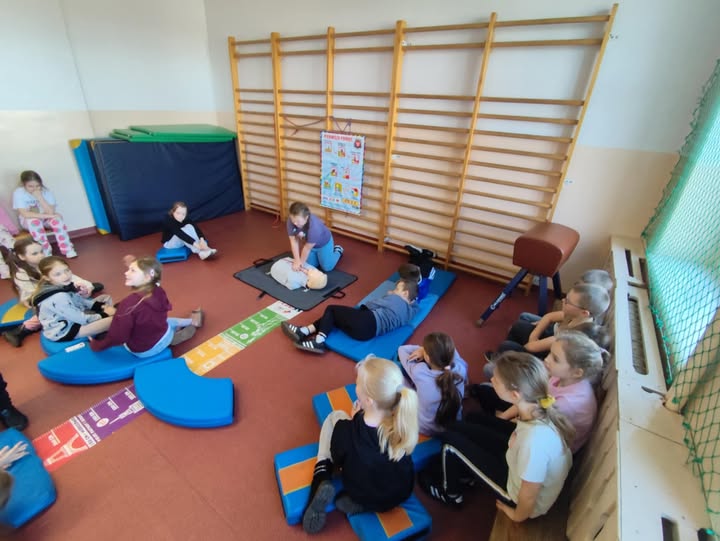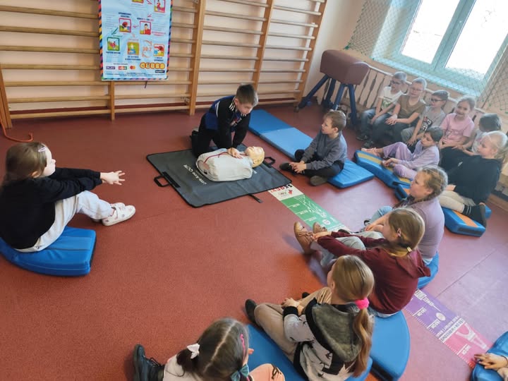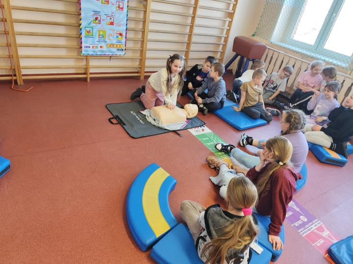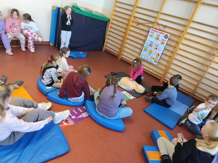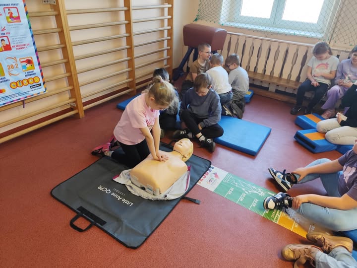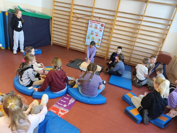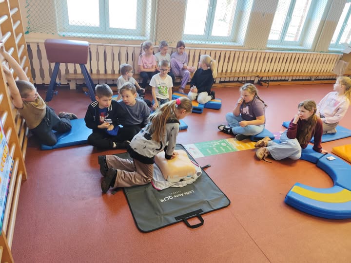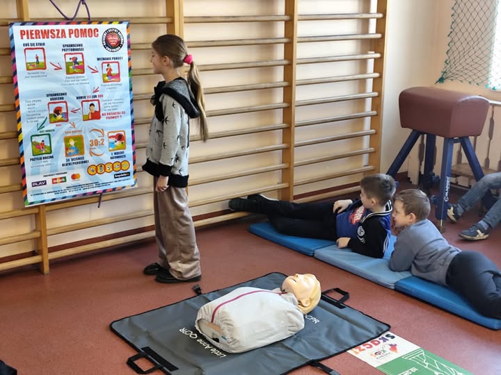 Uczniowie klas 1-3 doskonalili dziś swoje umiejętności w ramach realizacji pod kierunkiem wychowawaców Programu Edukacyjnego "Ratujemy i Uczymy ratować" prowadzonego przez Fundację WOŚP.