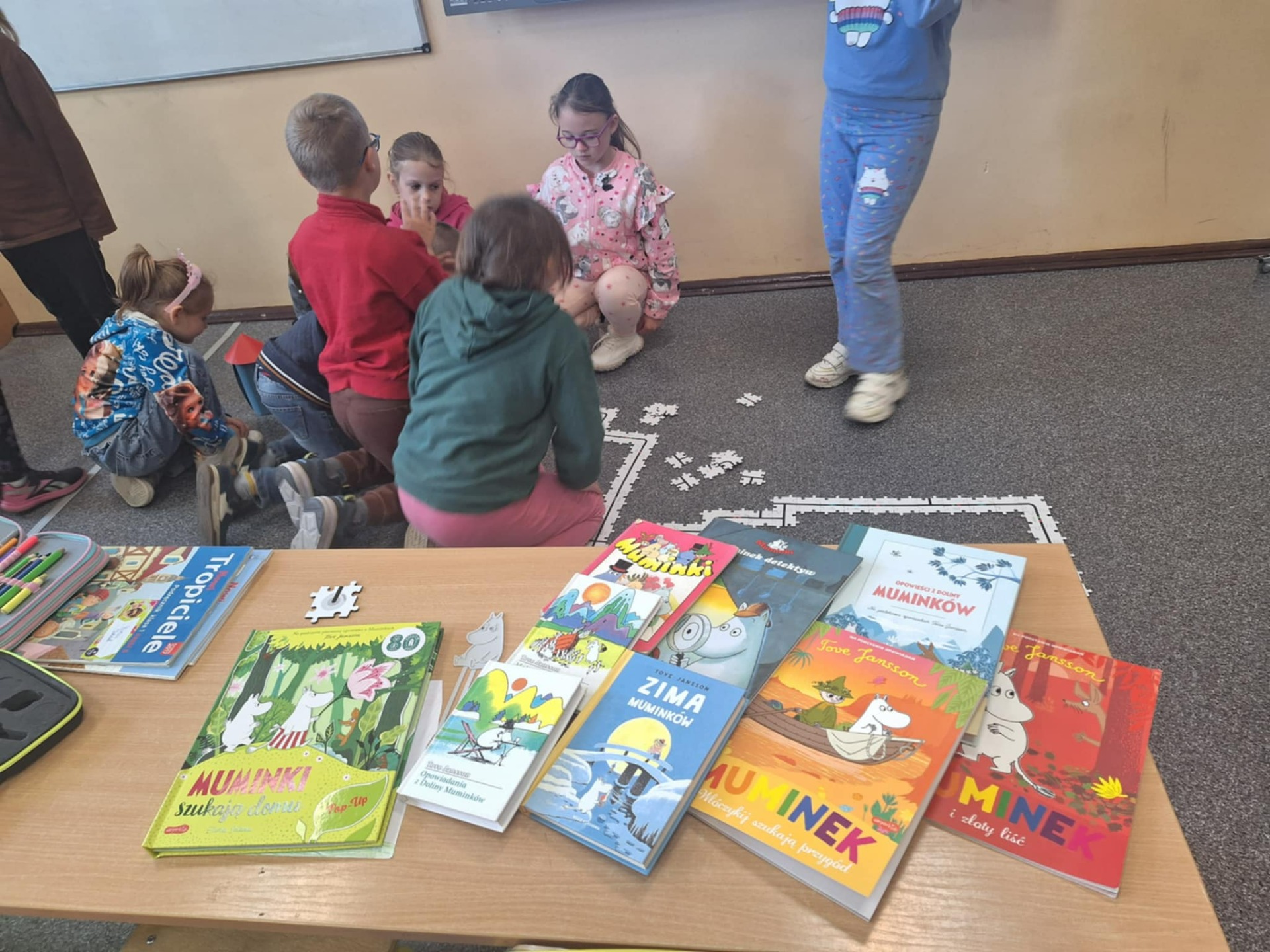 Uczniowie zapoznali się z postaciami z Doliny Muminków i literaturą Tove Jansson. Dzieci podziwiały piękną trójwymiarową książkę, a następnie wysłuchały opowiadania oraz za pomocą puzzli z kodami ułożyły drogę robota- Ozobota do domu Muminków.