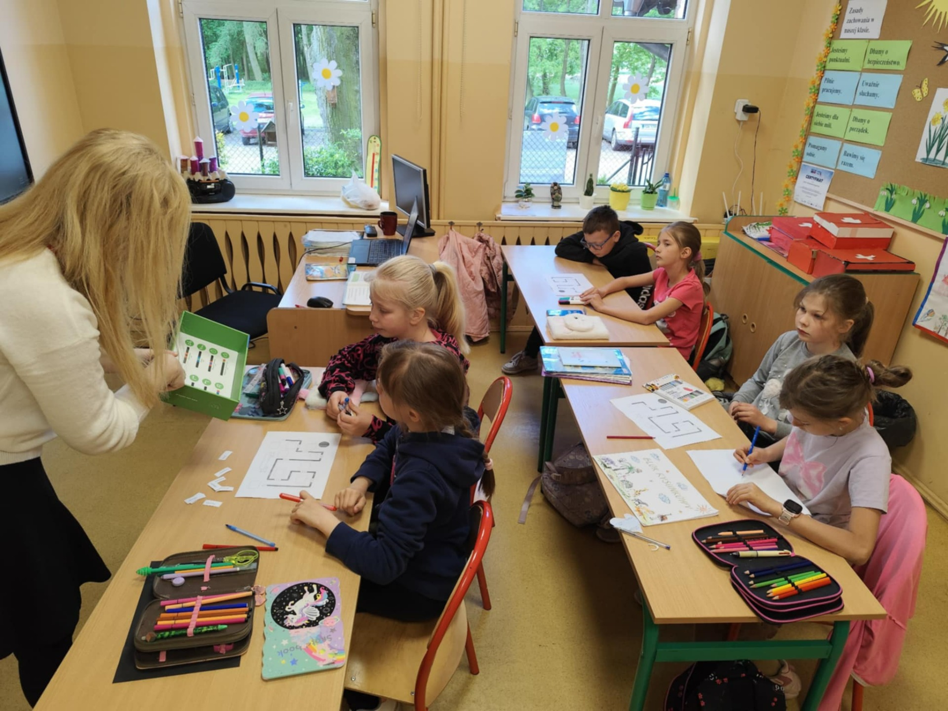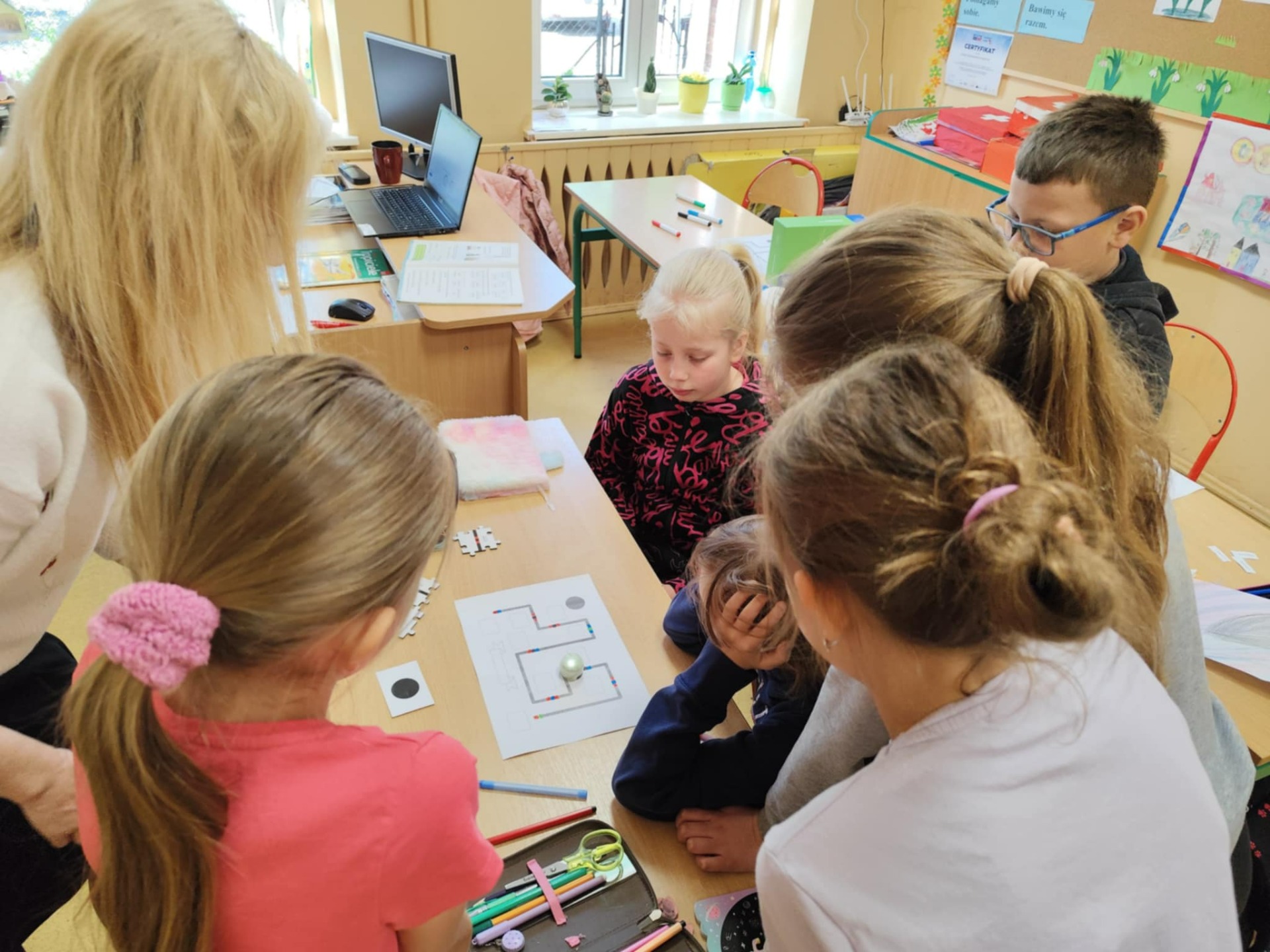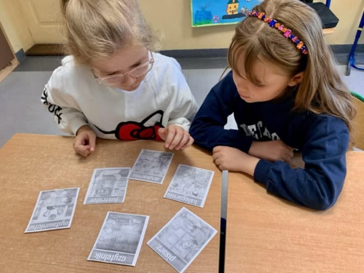Z okazji zbliżającego się Dnia Bibliotekarzy i Bibliotek , w ramach promocji czytelnictwa odbyły się w klasie 2 i 3 spotkania z Panią Olgą Hajkowską - pracownikiem Biblioteki Gminnej. Oprócz poznawania ciekawych książek i wiedzy na temat jak powstają, uczniowie wykonywali tematyczne zadania z zakresu programowania za pomocą edukacyjnego Ozobota.