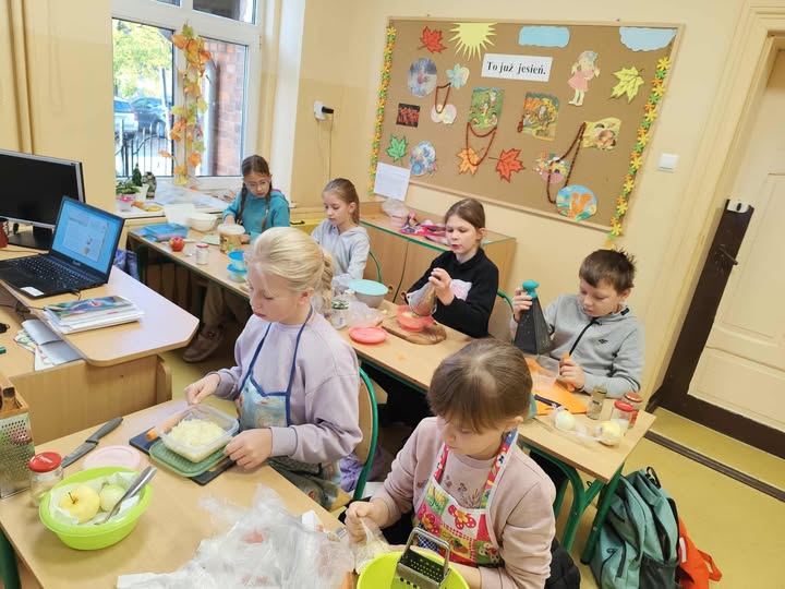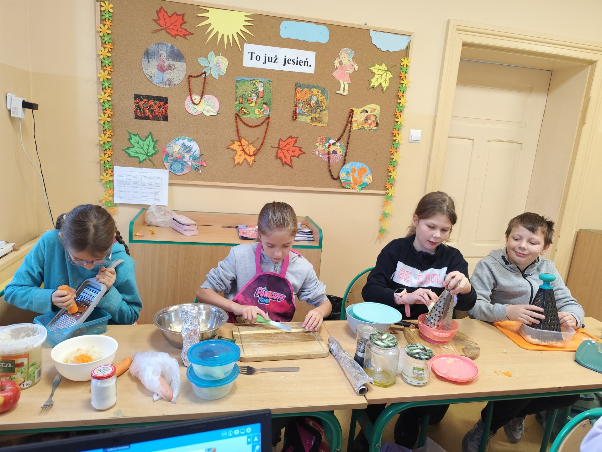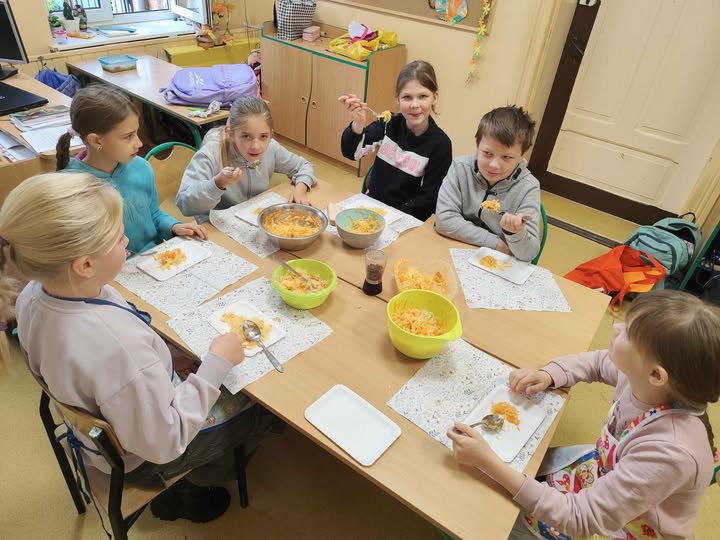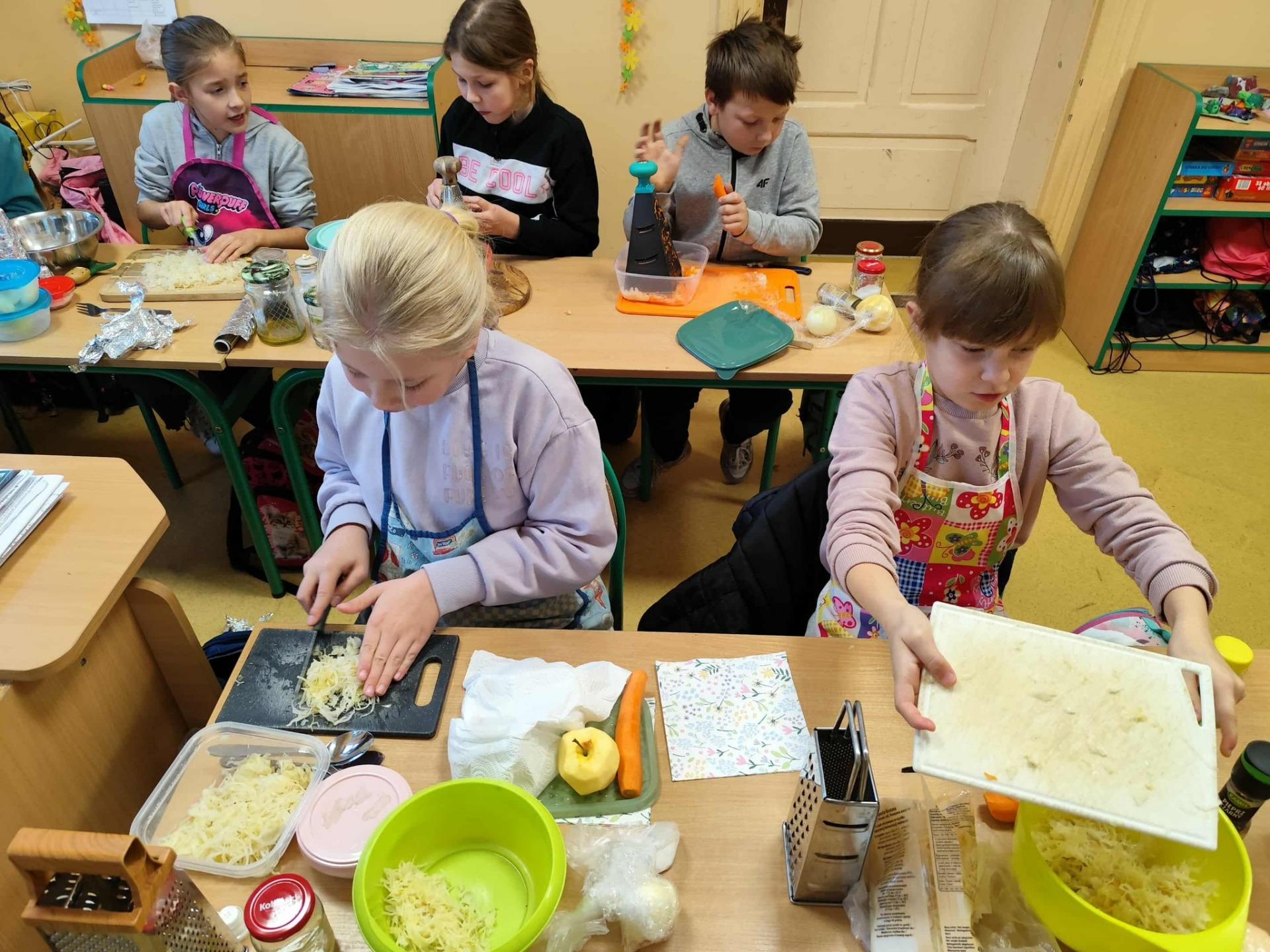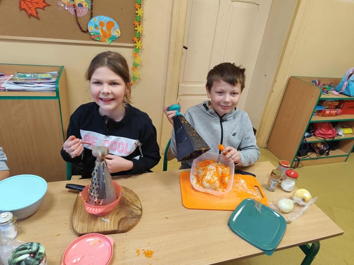Doceniając właściwości zdrowotne kiszonej kapusty, uczniowie klasy 3 samodzielnie wykonali bardzo zdrową, smaczną i bogatą w witaminy surówkę z kapusty, marchewki, jabłek i cebulki, która wzbogaciła dzisiejsze drugie śniadanie podczas pobytu w szkole. Polecamy! ![]()