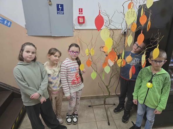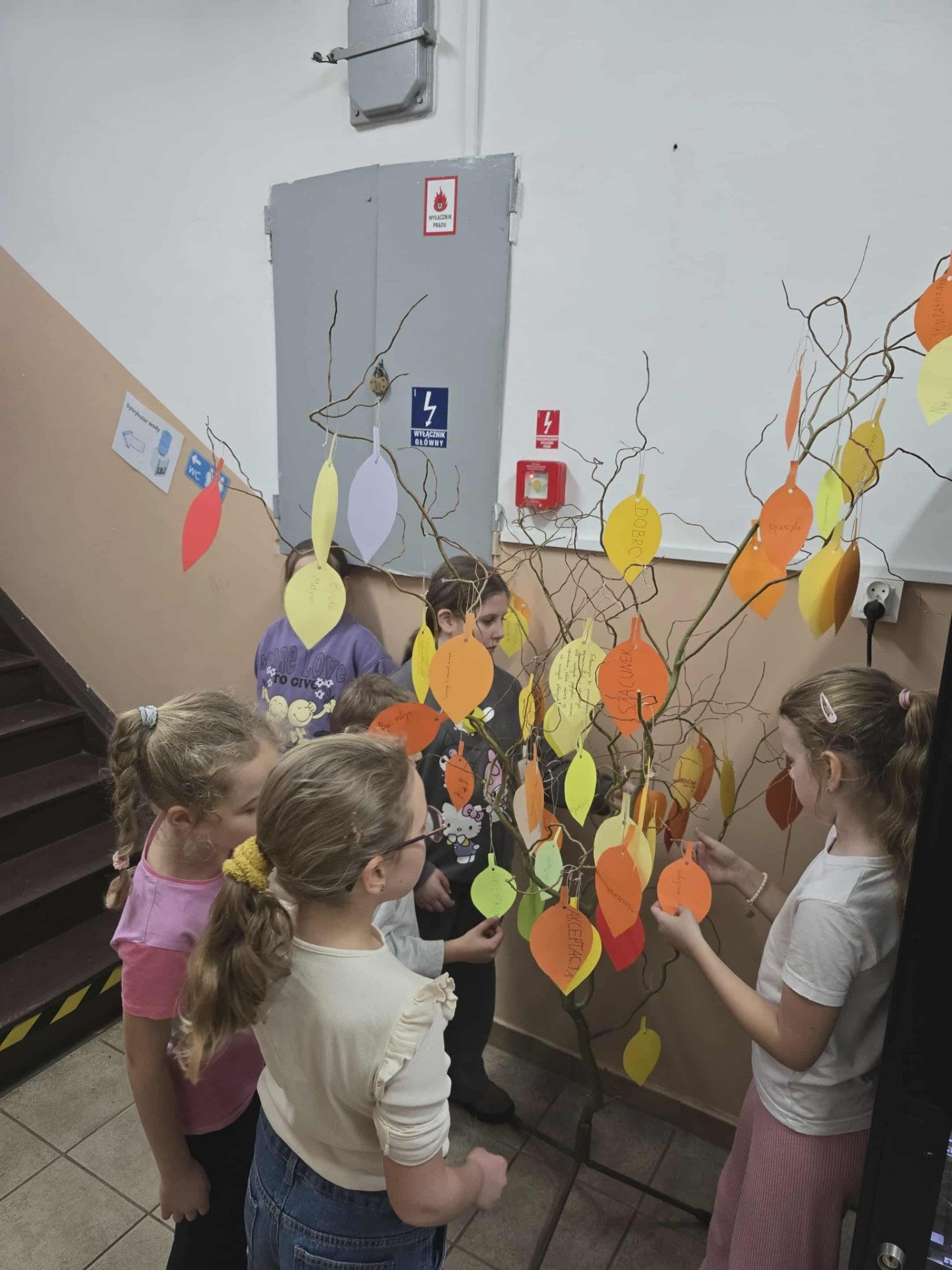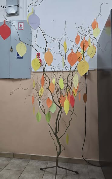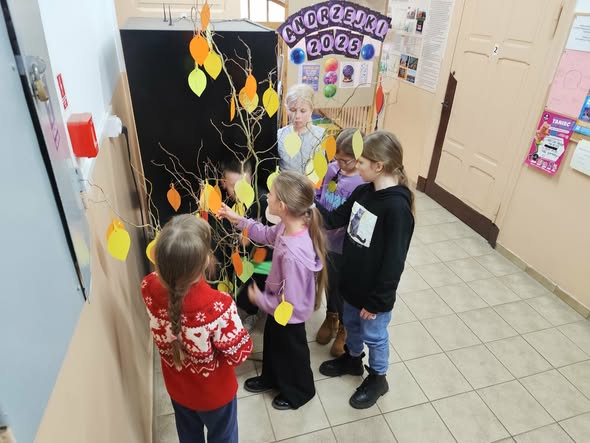 Uczniowie klas 1-8 stworzyli "Drzewo Tolerancji". Jest to symboliczna inicjatywa, podczas której dzieci pisały na liściach hasła związane z tolerancją i przyczepiali je do "drzewa", tworząc wspólne dzieło symbolizujące wzajemne zrozumienie i wsparcie